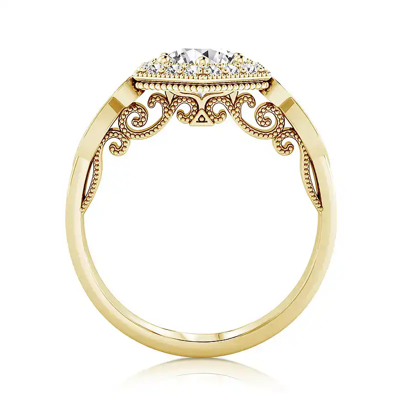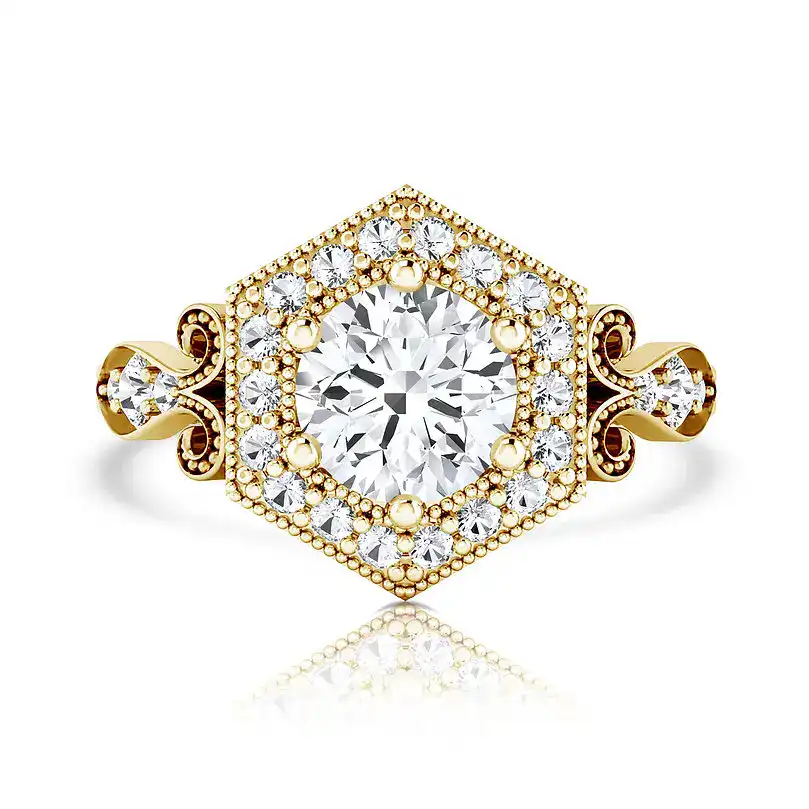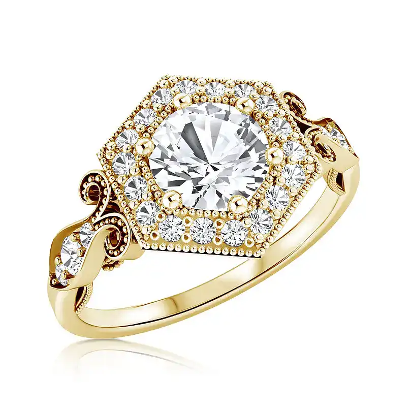 טבעת אירוסין משושה וינטאג' זהב 14K לבן צהוב או ורוד. משובצת יהלום מרכזי 0.50 נקודות. ויהלומי צד במשקל כולל של 0.24 נקודות.