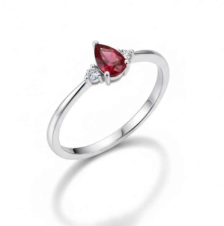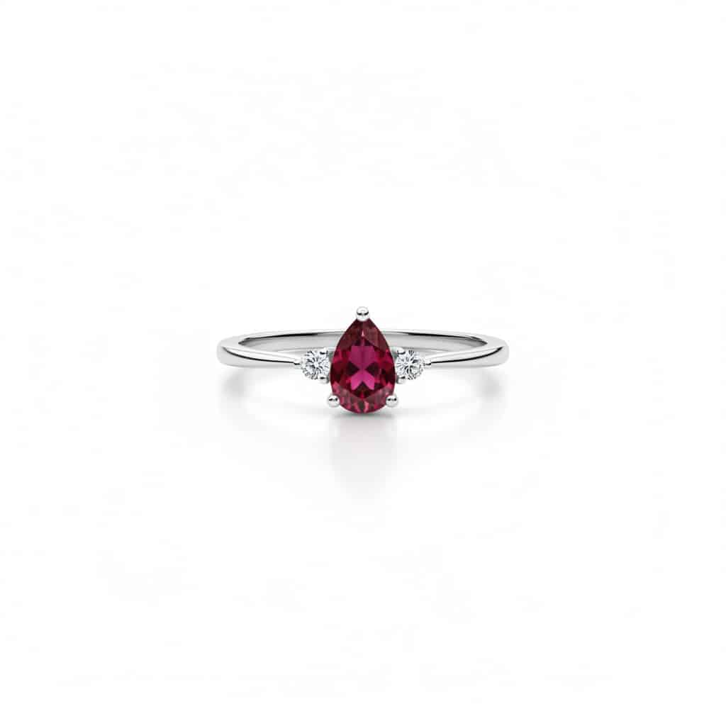 טבעת אבן חן טיפה ושני יהלומים בצד