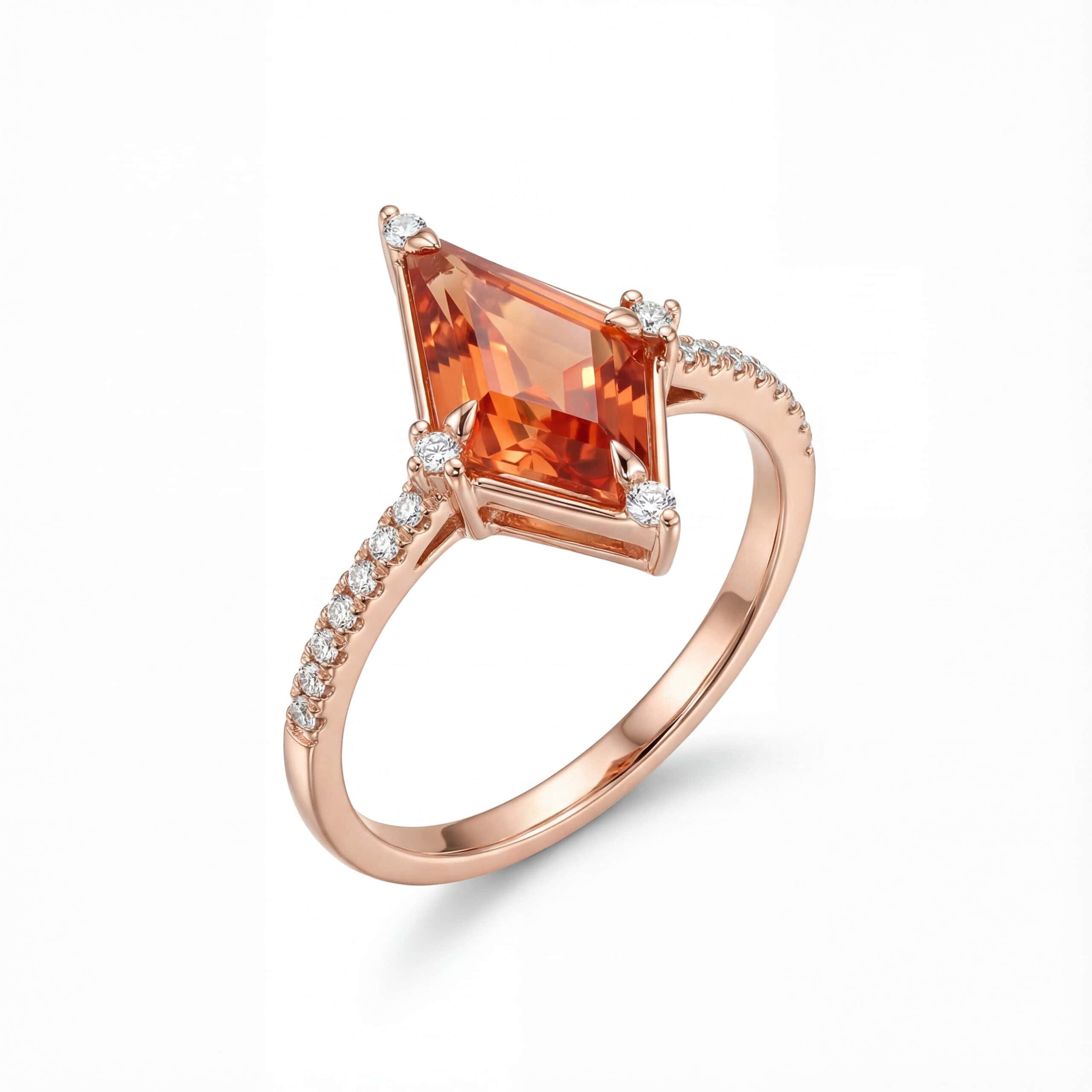 טבעת אבן חן כתומה בצורת דלתון ויהלומים- Joy, זהב לבן, צהוב או ורוד 14K משובץ יהלומים.