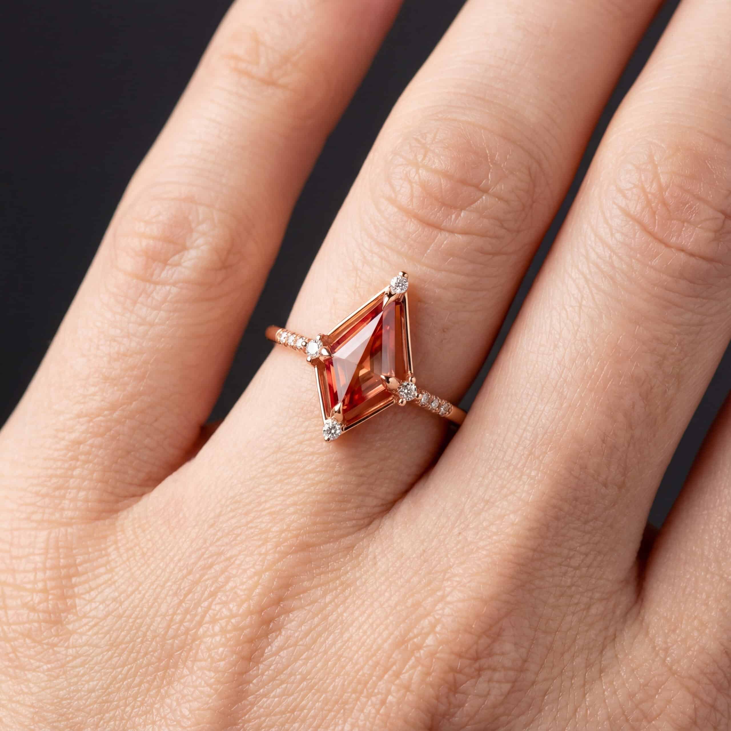 טבעת אבן חן כתומה בצורת דלתון ויהלומים -Joy