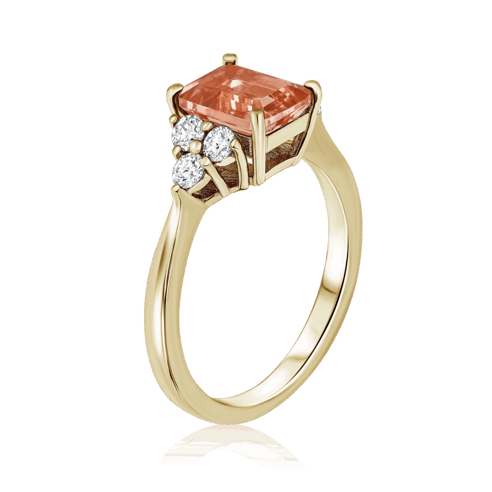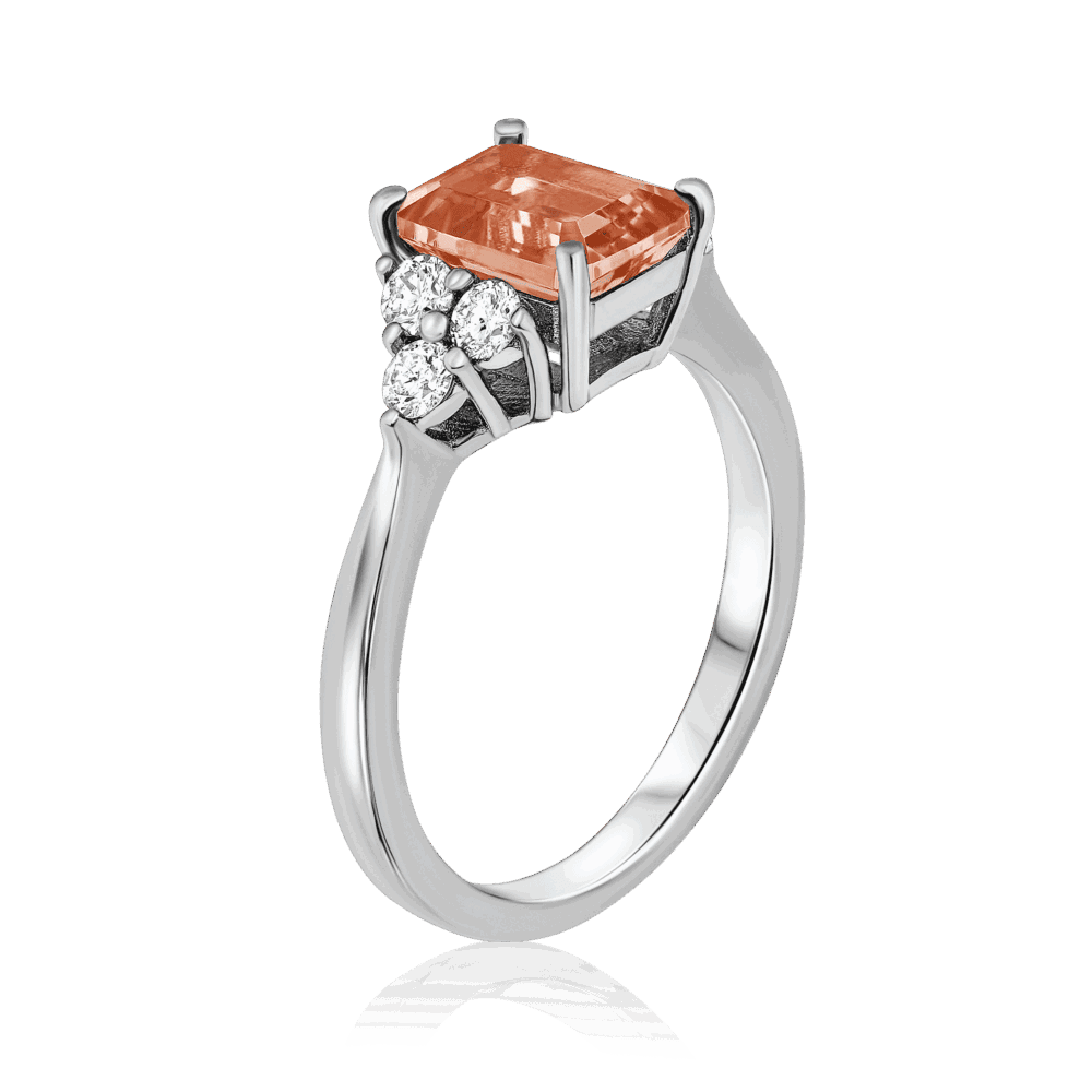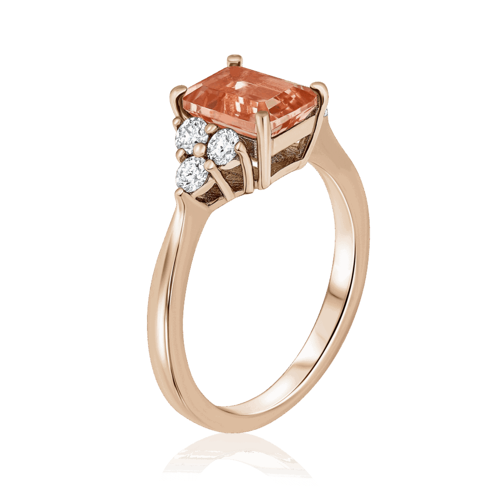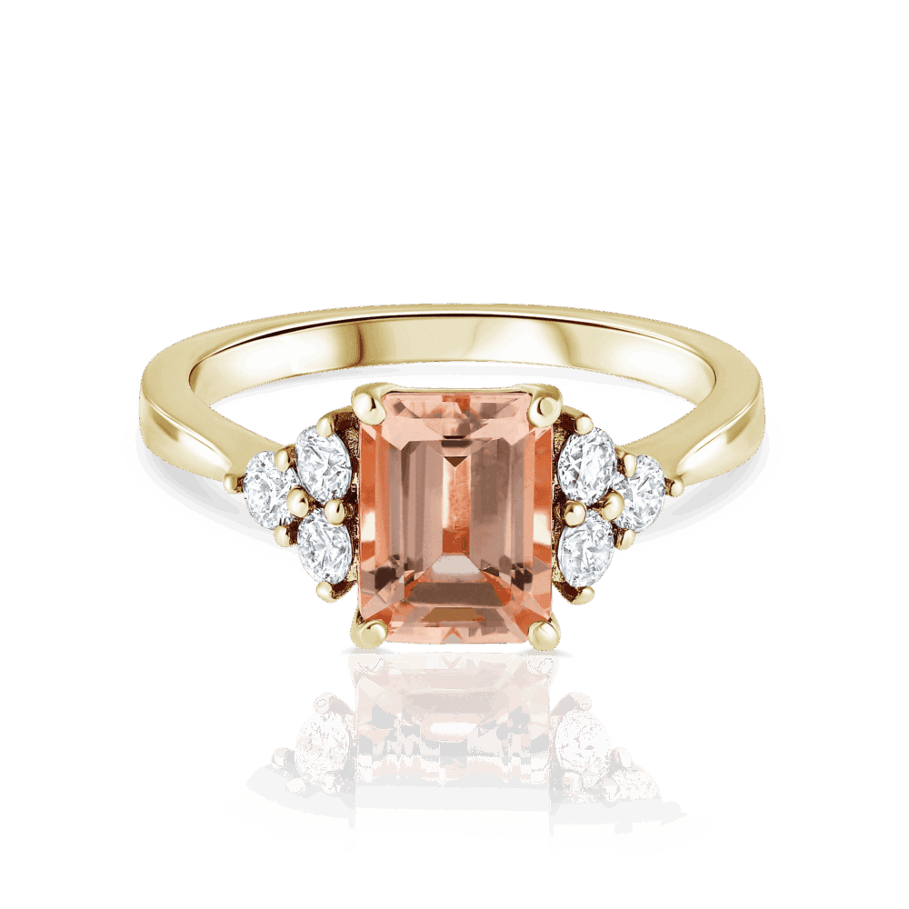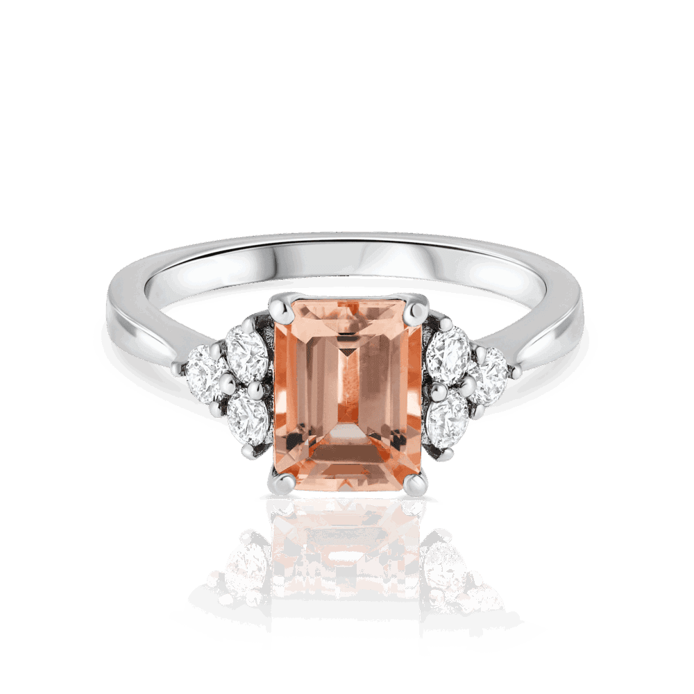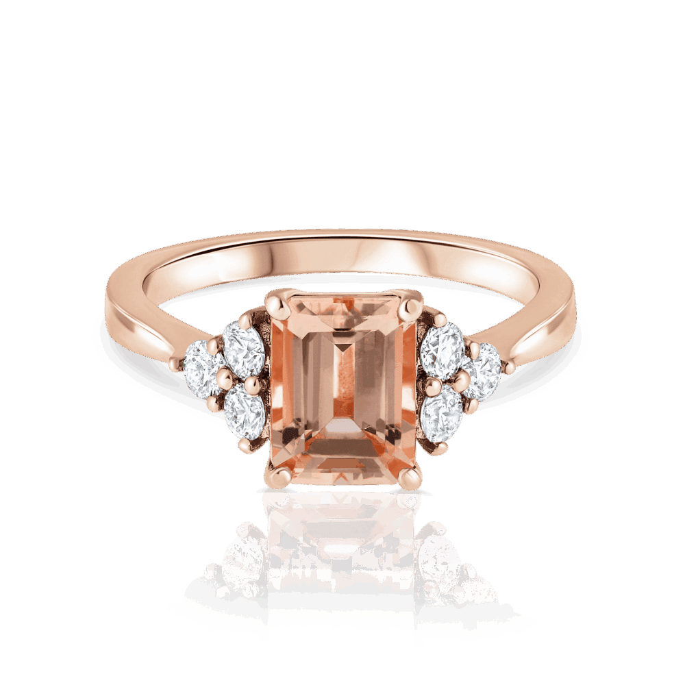 טבעת אבן חן מורגנייט, זהב 14K לבן, צהוב או ורוד, משובצת יהלום מרכזי במשקל 0.50 קראט ובצד יהלום אחד במשקל 0.03 נקודות.