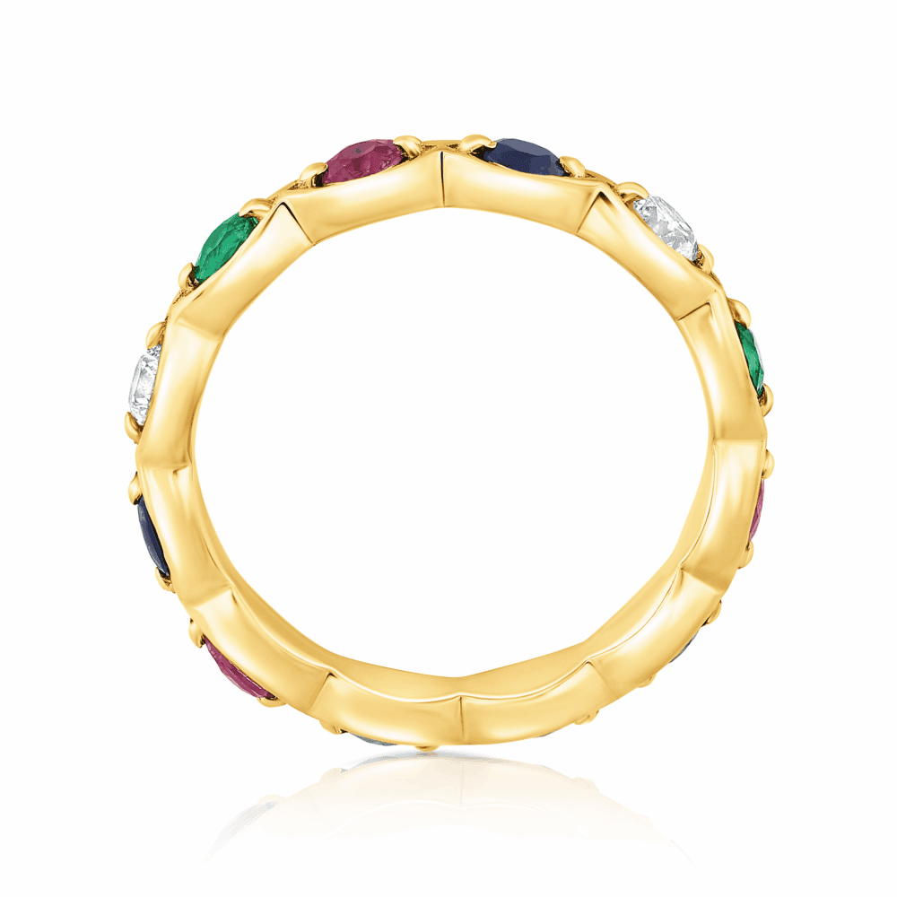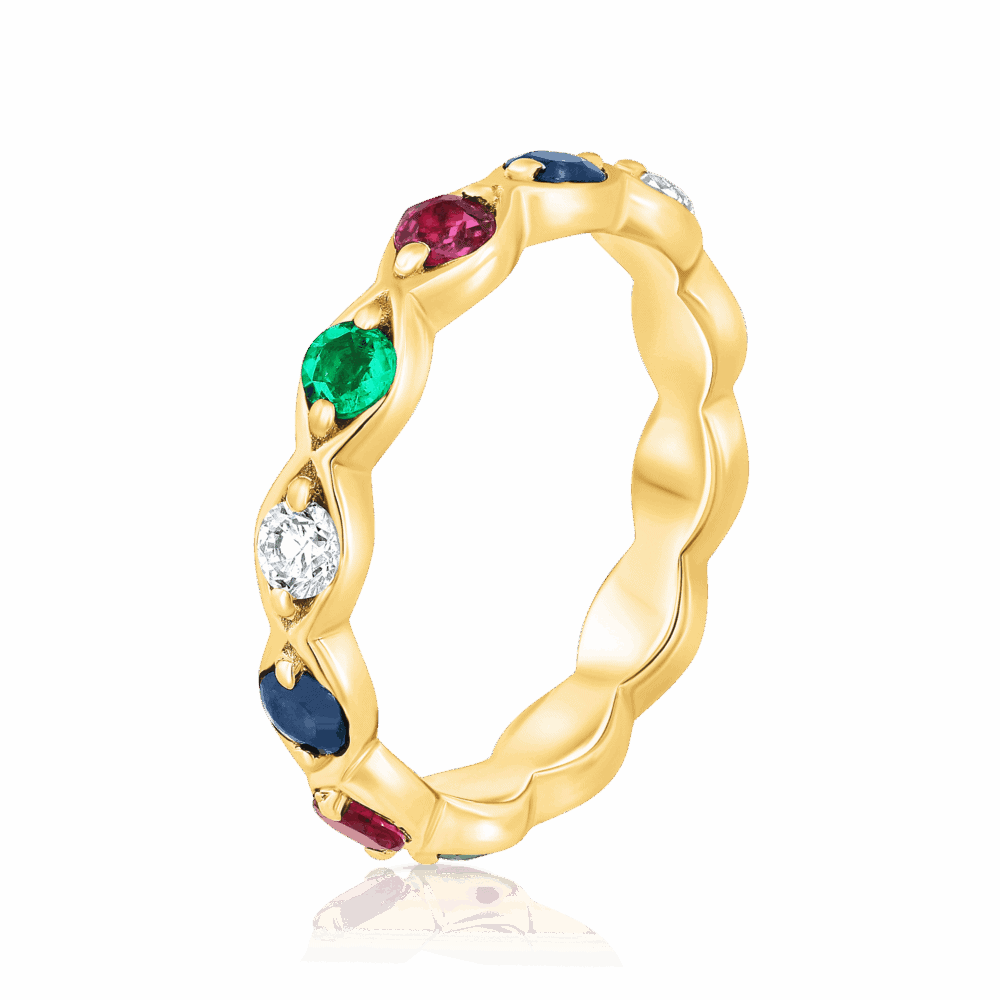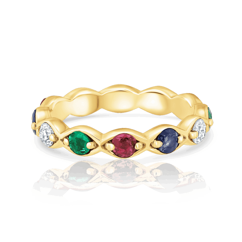 טבעת אבני חן צבעוניות, זהב 14K לבן צהוב או ורוד. משובצת אבני חן צבעוניים.