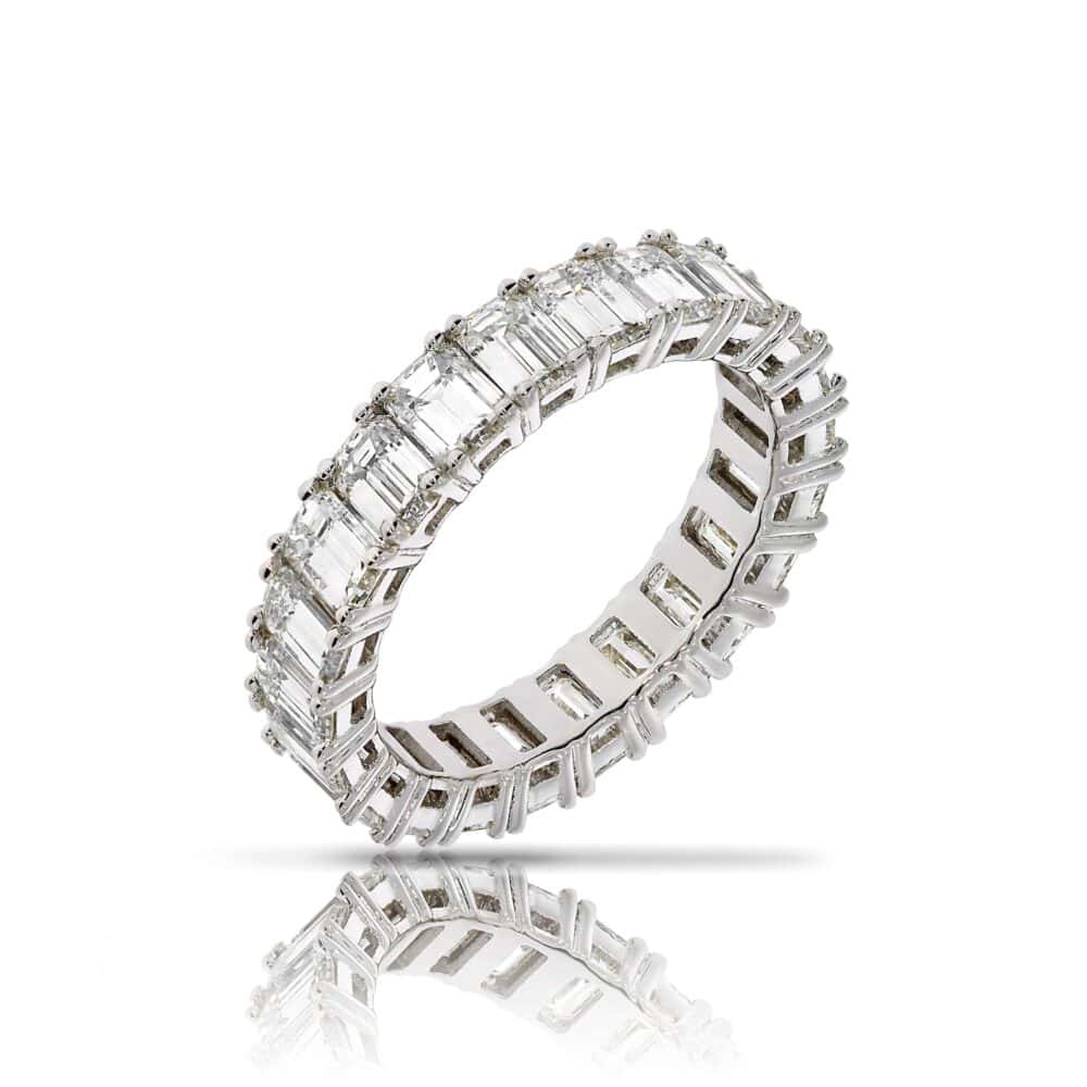 טבעת אינטרנטי אמרלדים , זהב 18K לבן צהוב או ורוד. משובצת יהלומים בחיתוך אמרלד 0.10 נקודות כל יהלום.