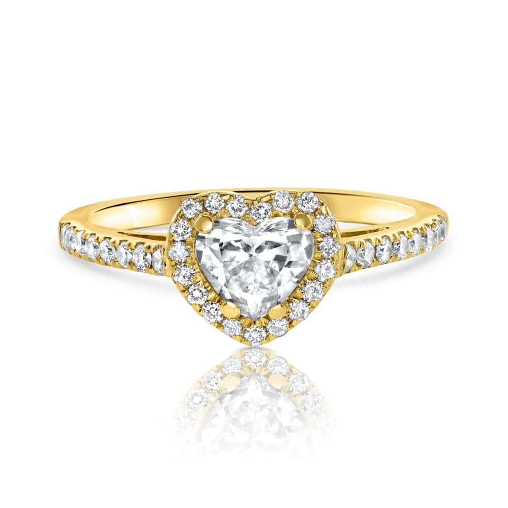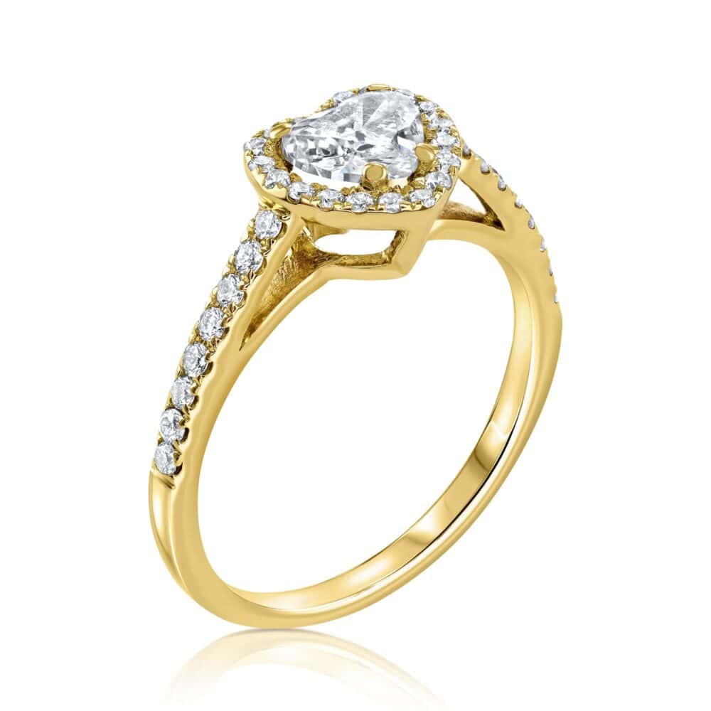טבעת אירוסין לב, זהב 14K לבן צהוב או ורוד. משובצת יהלום מרכזי במשקל 0.30 נקודות. ומסביב יהלומים במשקל 0.15 נקודות.