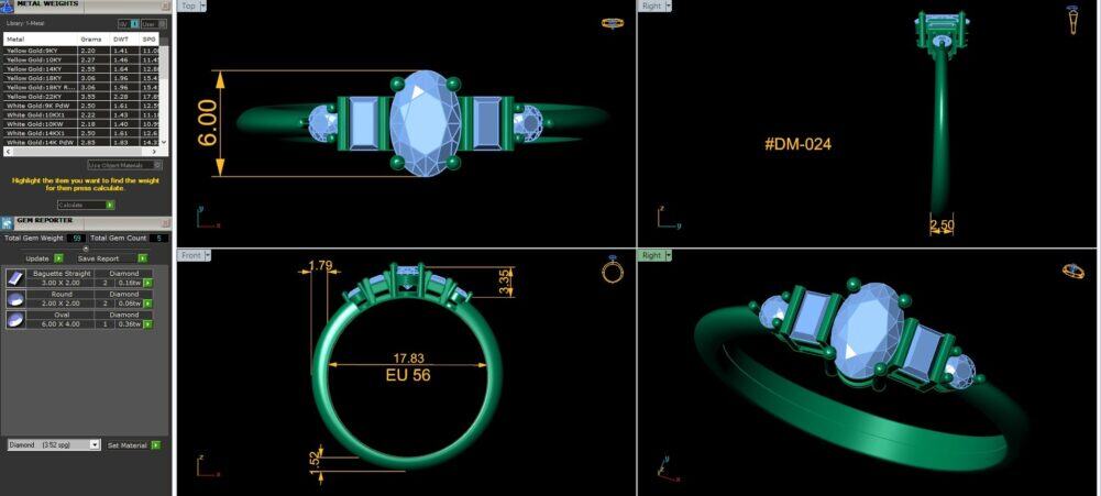 משקל יהלום מרכזי: 0.36 נקודות. בחיתוך אובל.