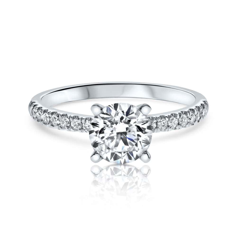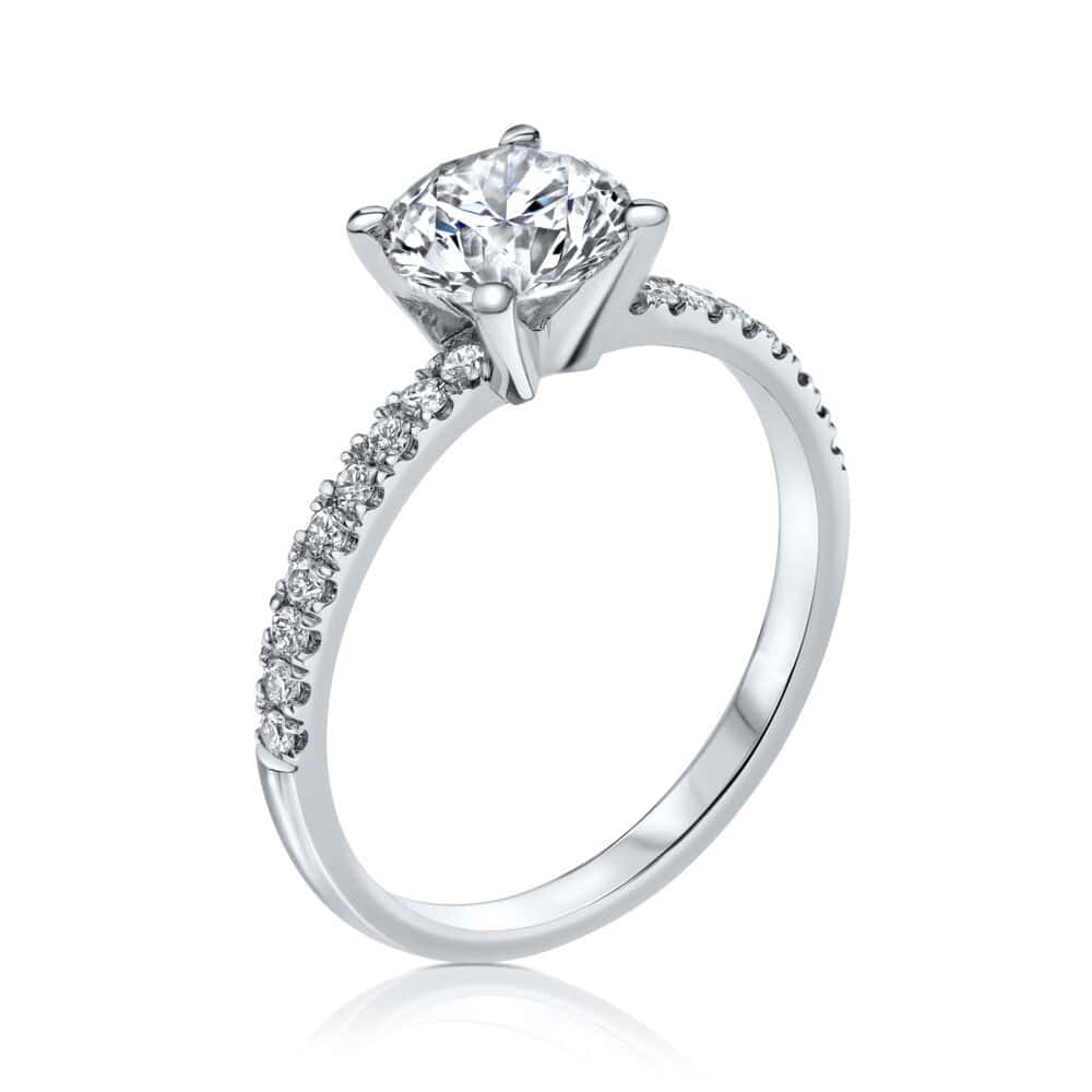טבעת אירוסין קלאסית, זהב 14 קראט לבן צהוב או ורוד, משובצת יהלום מרכזי 1.00 קראט. ויהלומי צד במשקל 0.10 נקודות סה"כ.