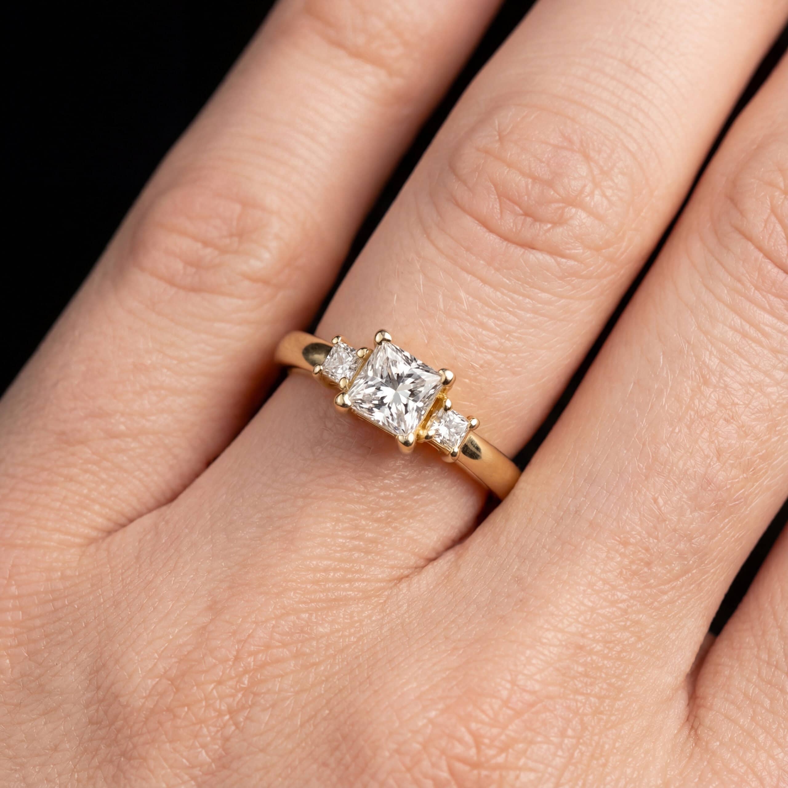 טבעות זהב יוקרתיות משובצות יהלומים בצורה פרינסס. תכשיטים בעבודת אומן עם הקפדה על איכות ואלגנטיות.