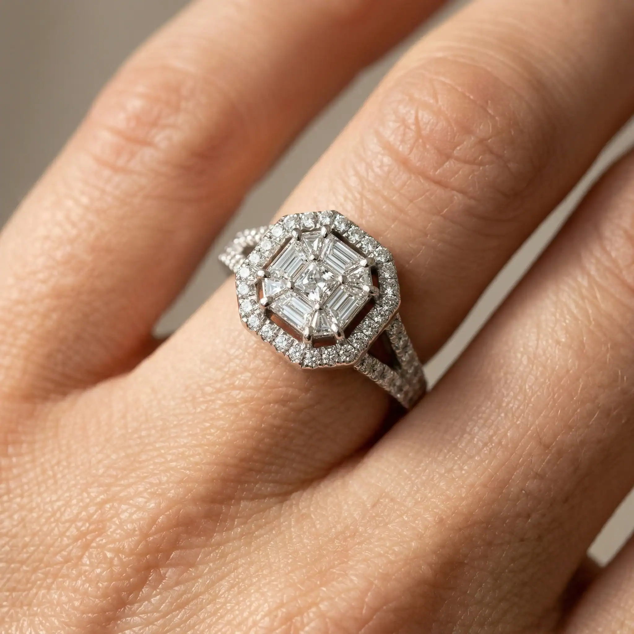 טבעת יהלומים מיוחדת – Marley זהב 14K לבן, צהוב או ורוד, משובצת יהלומים.