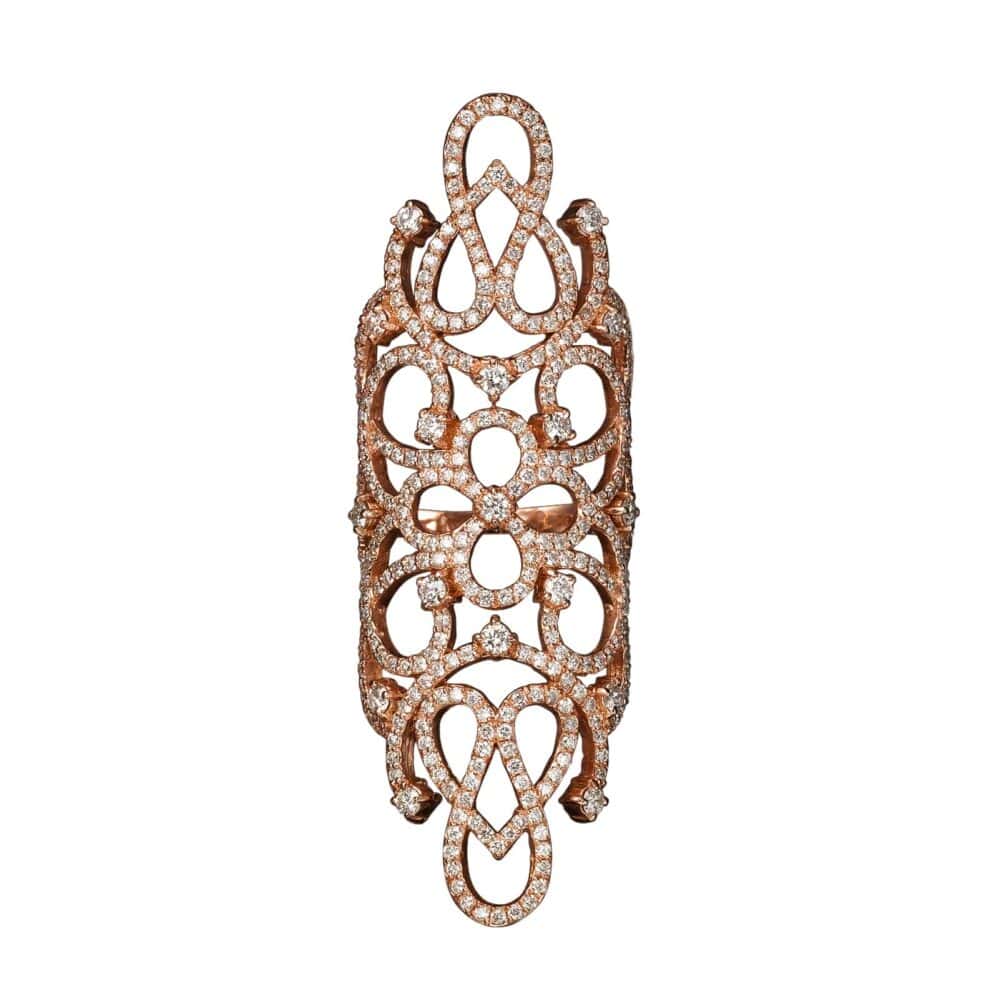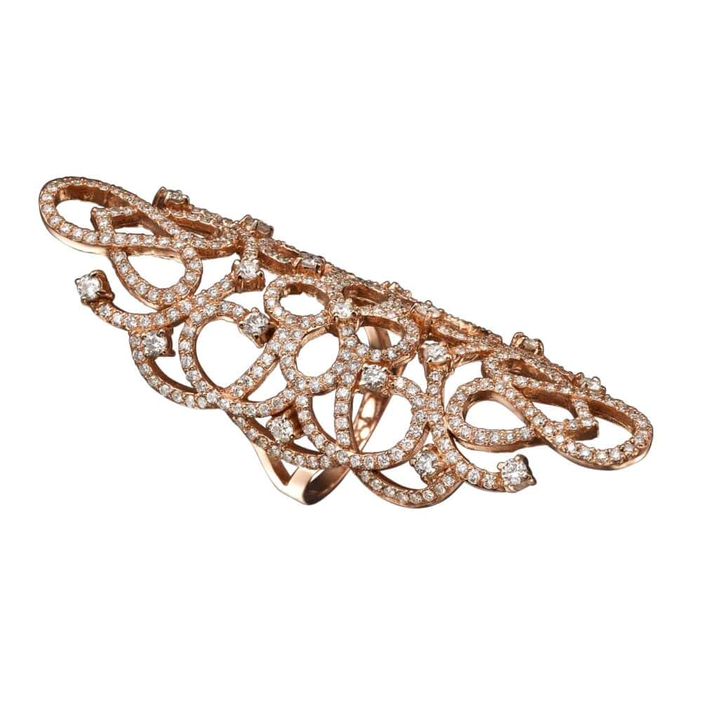 טבעת יהלומים רחבה זו מתאפיינת בעיצוב פיתולים ייחודי ומרהיב, המעניק לה מראה דינמי ויוצא דופן. הפיתולים המעוצבים בקפידה יוצרים תחושת תנועה מתמשכת, כשיהלומים נוצצים משובצים לאורך הקווים הזורמים של הטבעת, מוסיפים ברק ואלגנטיות לכל פיתול. השילוב בין הרוחב המרשים לבין העיצוב המפותל יוצר תכשיט מרהיב, המשלב באופן מושלם תחכום ועוצמה עם נגיעות של רכות ועדינות. טבעת זו היא הצהרה של סגנון ייחודי ומלא נוכחות, שמתאימה לכל אישה המחפשת תכשיט שלא ניתן להתעלם ממנו.