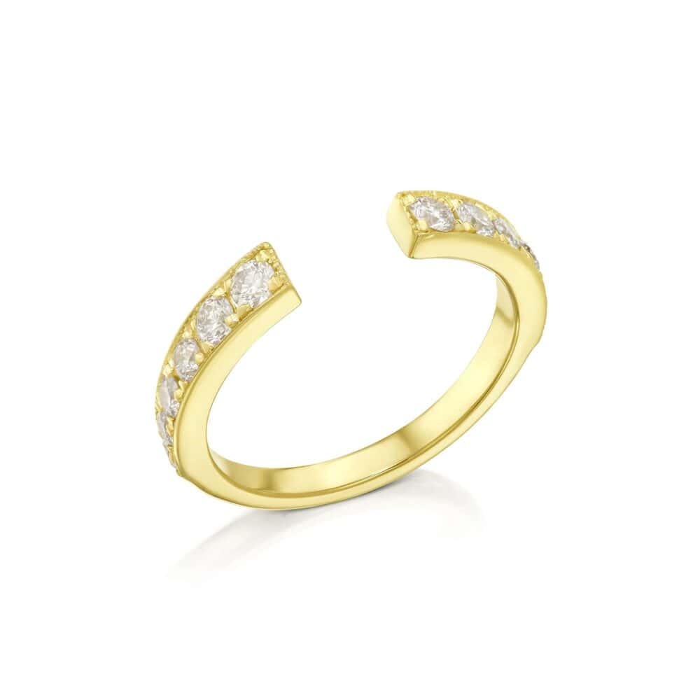 טבעת יהלומים פתוחה, זהב 14K משובצת 12 יהלומים במשקל כולל של 0.41 נקודות