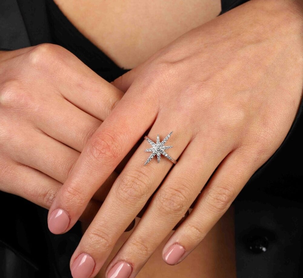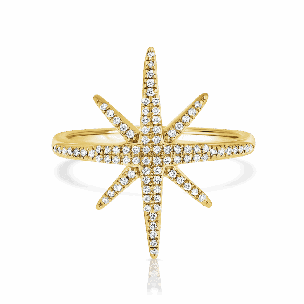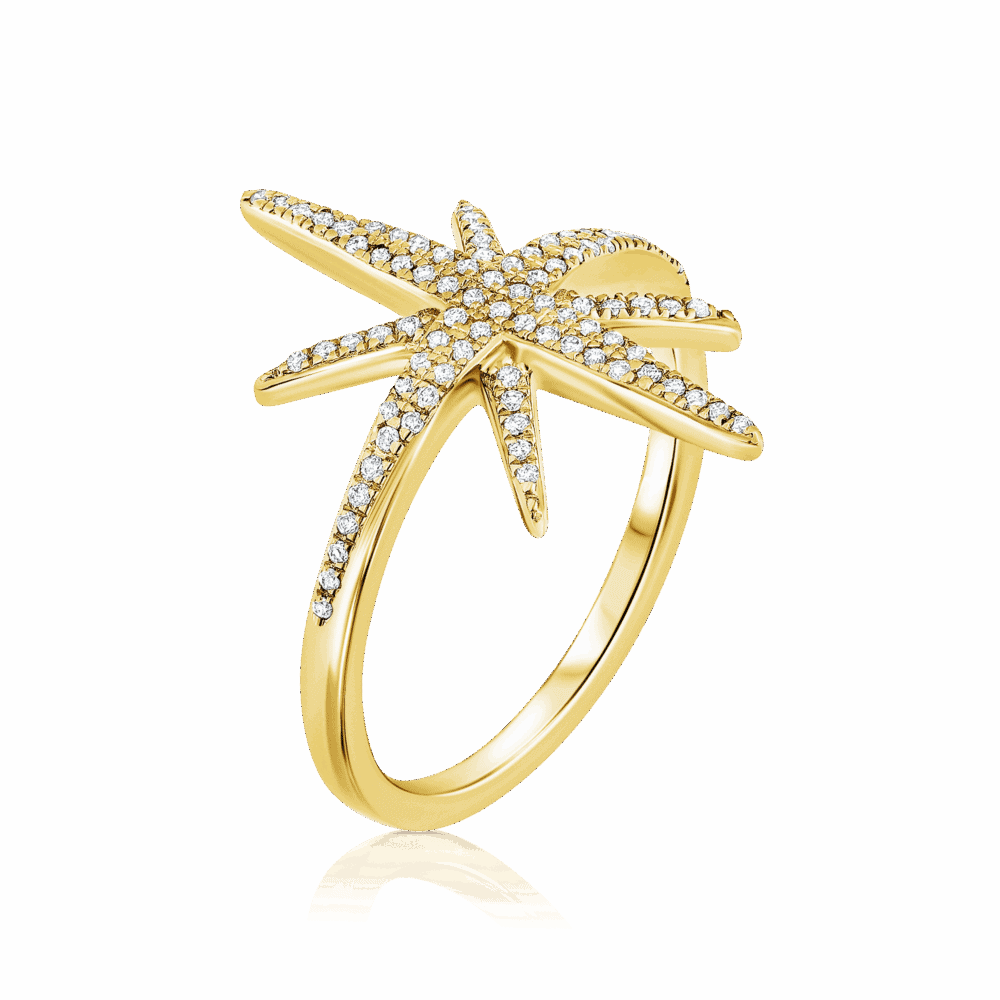 טבעת כוכב ,זהב לבן, צהוב או ורוד 14K משובצת יהלומים במשקל 0.18 נקודות.