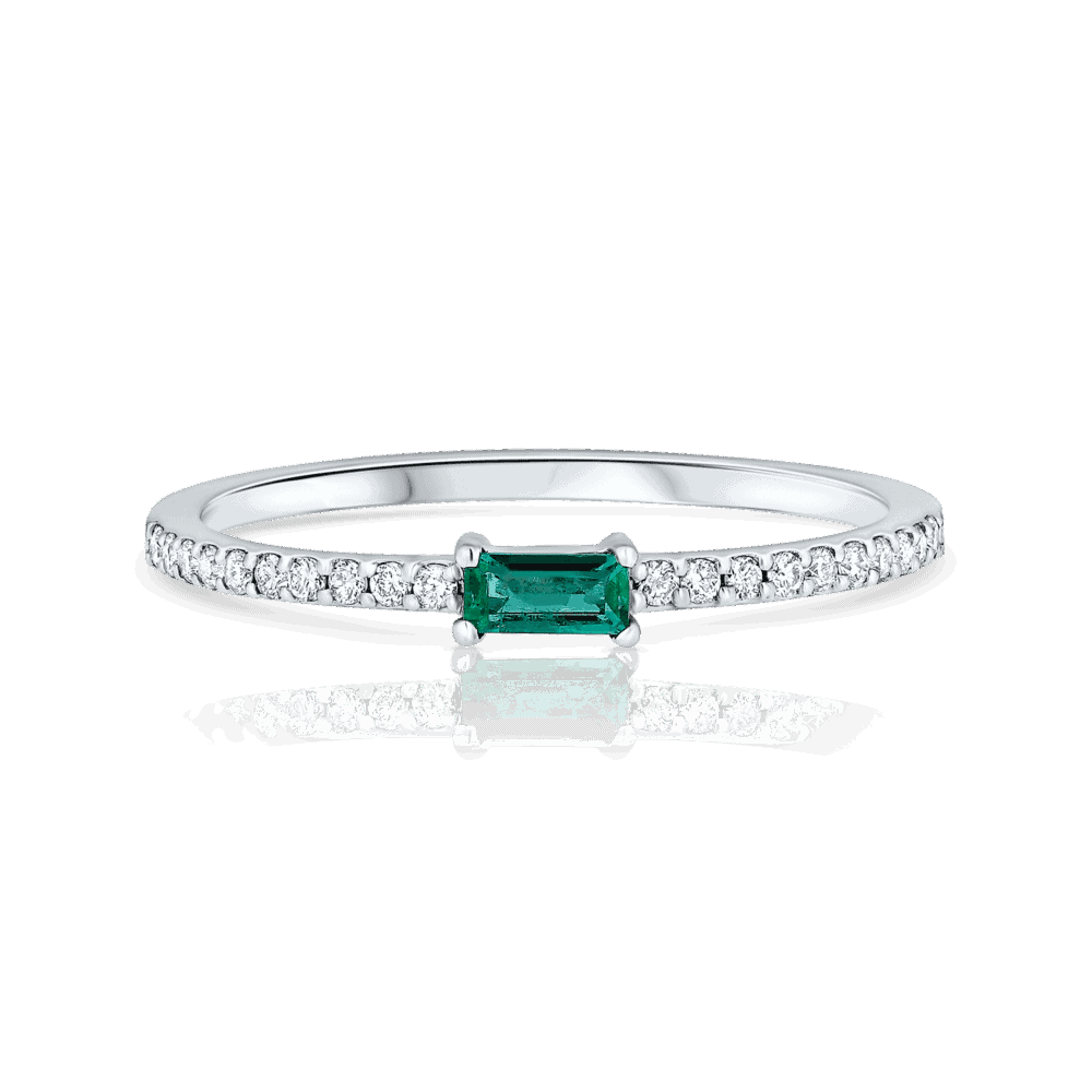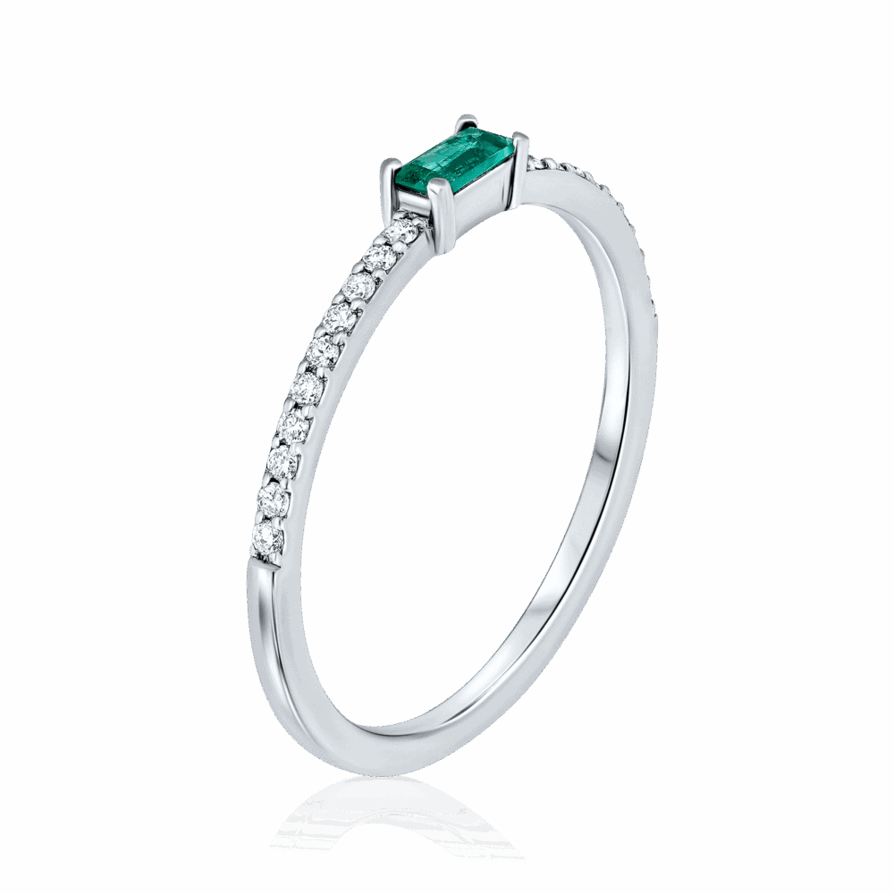 טבעת נישואים משובצת אמרלד זהב 14K קראט לבן צהוב או ורוד, משובצת אבן חן אמרלד טבעי במשקל 0.10 נקודות. ויהלומים במשקל 0.15 נקודות.