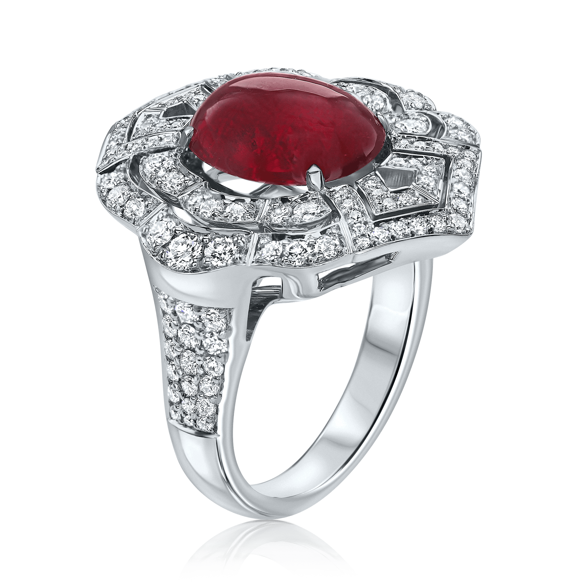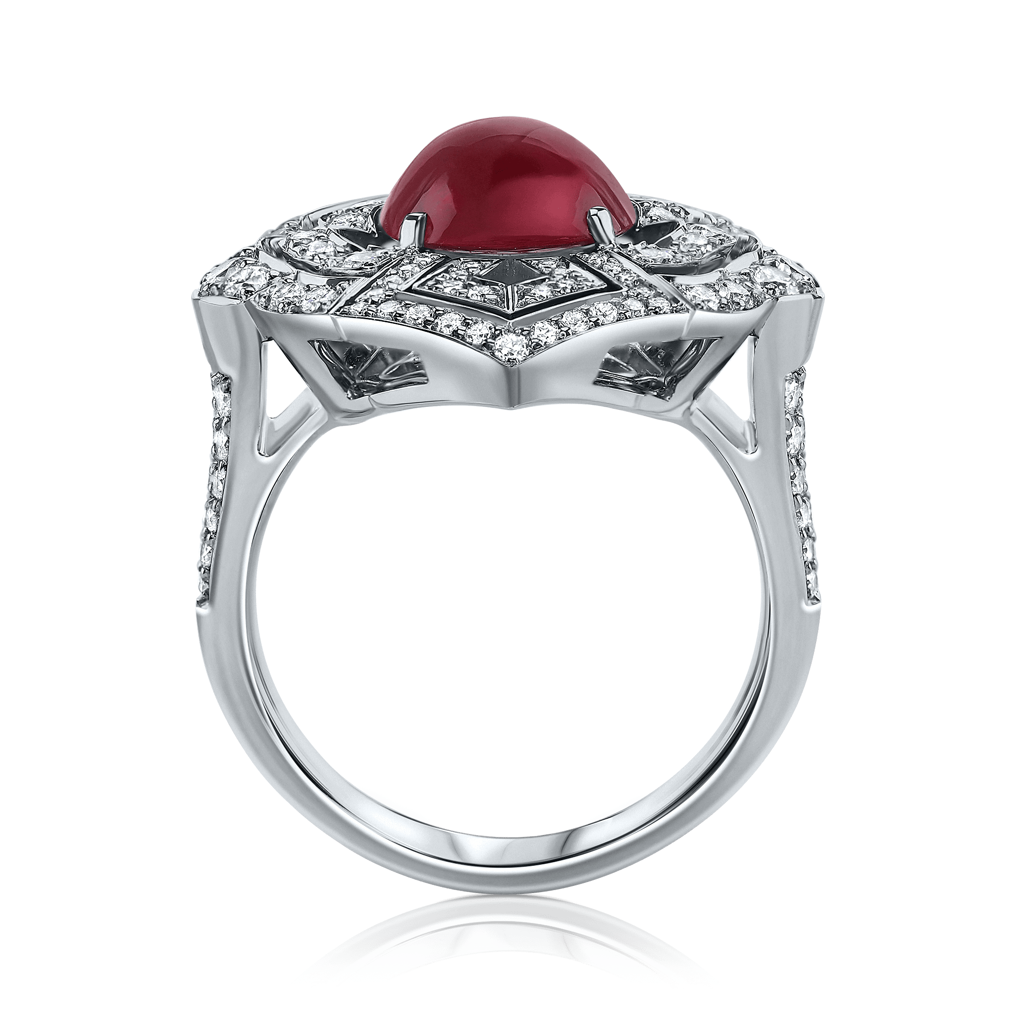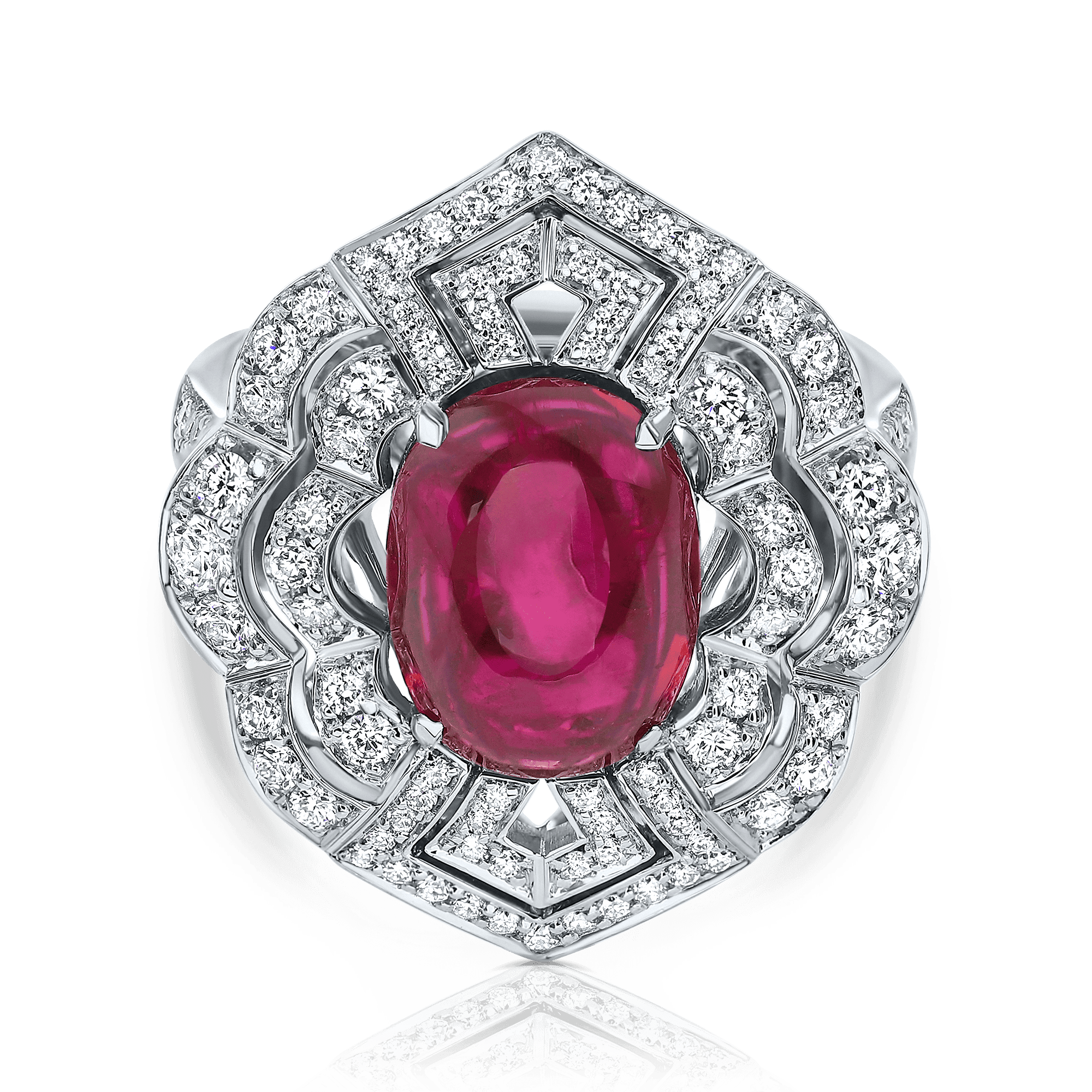 טבעת מעוצבת רובי קפוצון ,זהב לבן, צהוב או ורוד 14K משובץ יהלומים