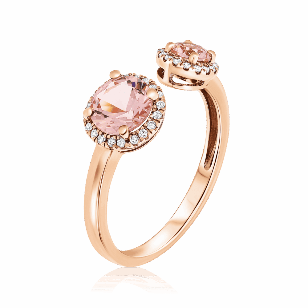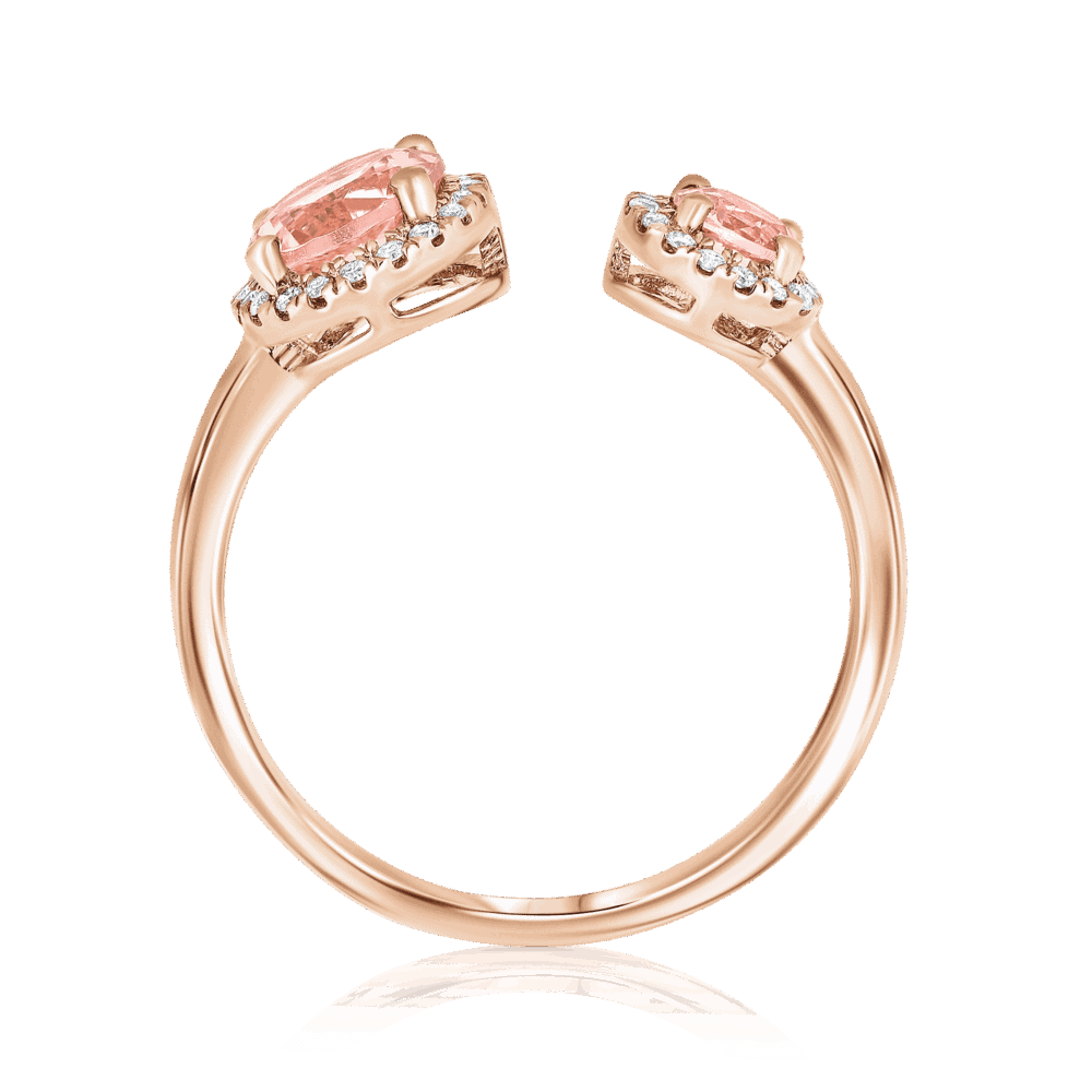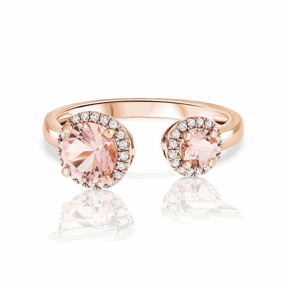 טבעת מעוצבת ,זהב לבן, צהוב או ורוד 14K משובצת 36 יהלומים במשקל 0.12 נקודות. ו2 אבני חן מורגונייט במשקל 1.02 נקודות.