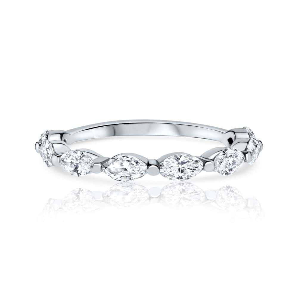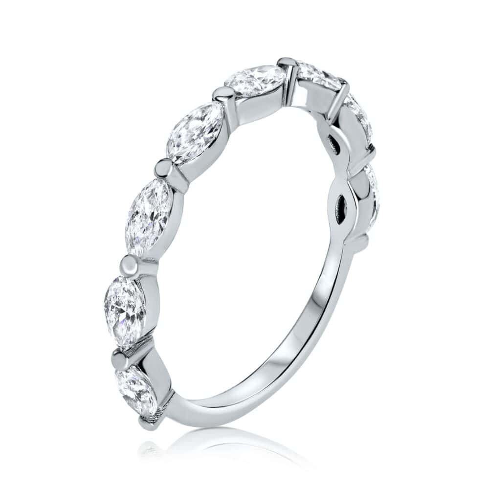 טבעת שורה מרקיזות ,זהב לבן, צהוב או ורוד 14K משובצת 8 יהלומים במשקל 0.80 נקודות סה"כ.