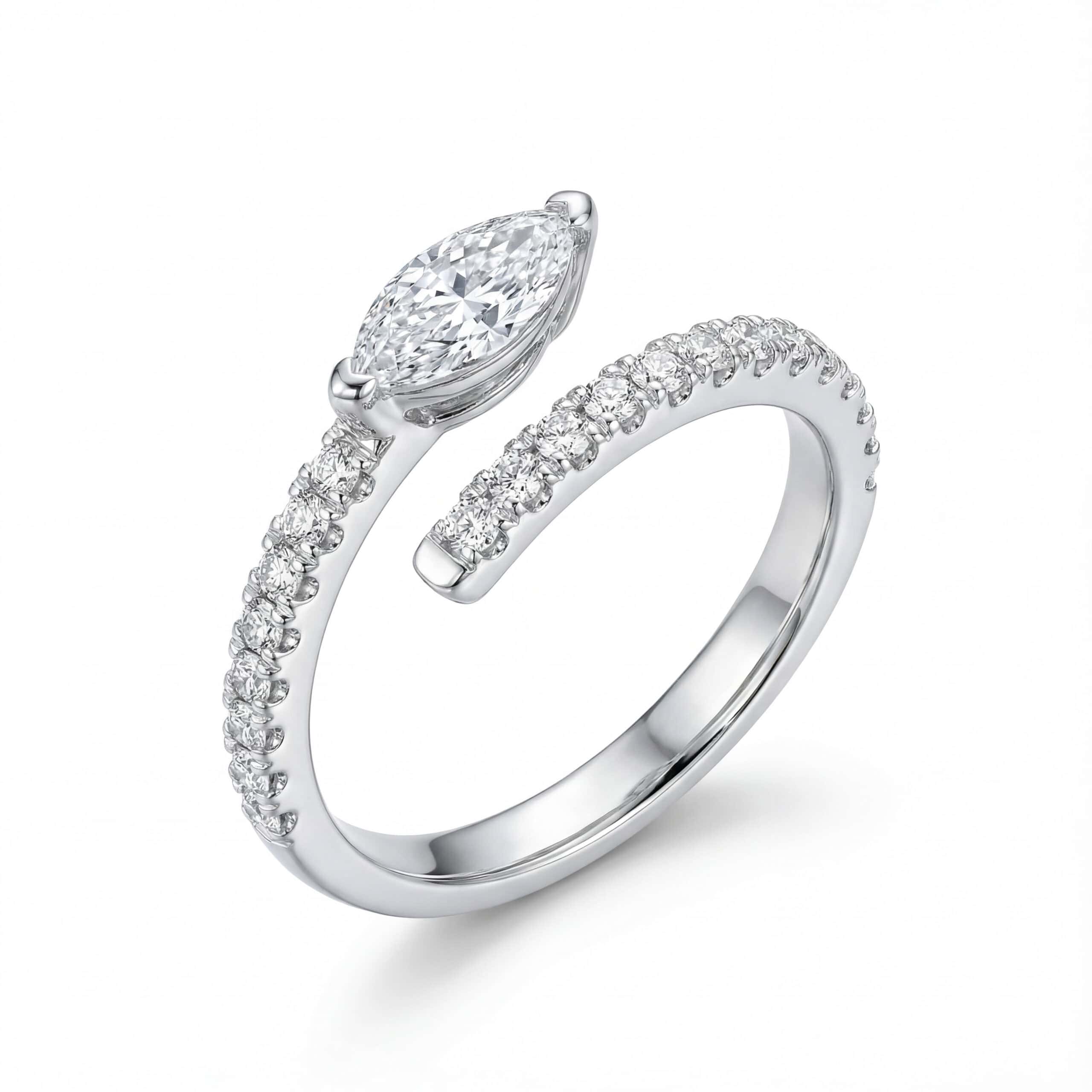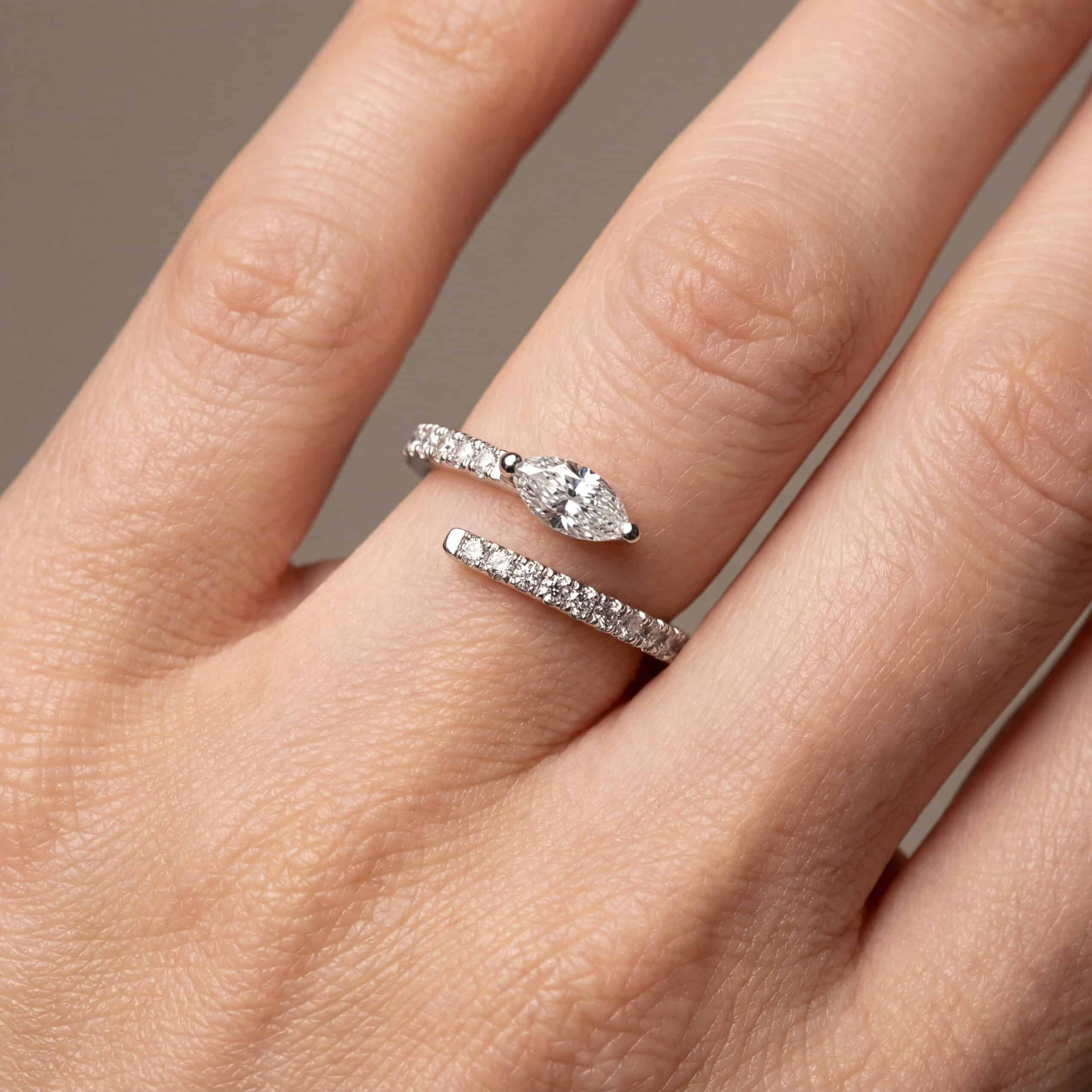 טבעת נחש מרקיזה עם יהלומים – May, זהב לבן, צהוב או ורוד 14K משובץ יהלומים