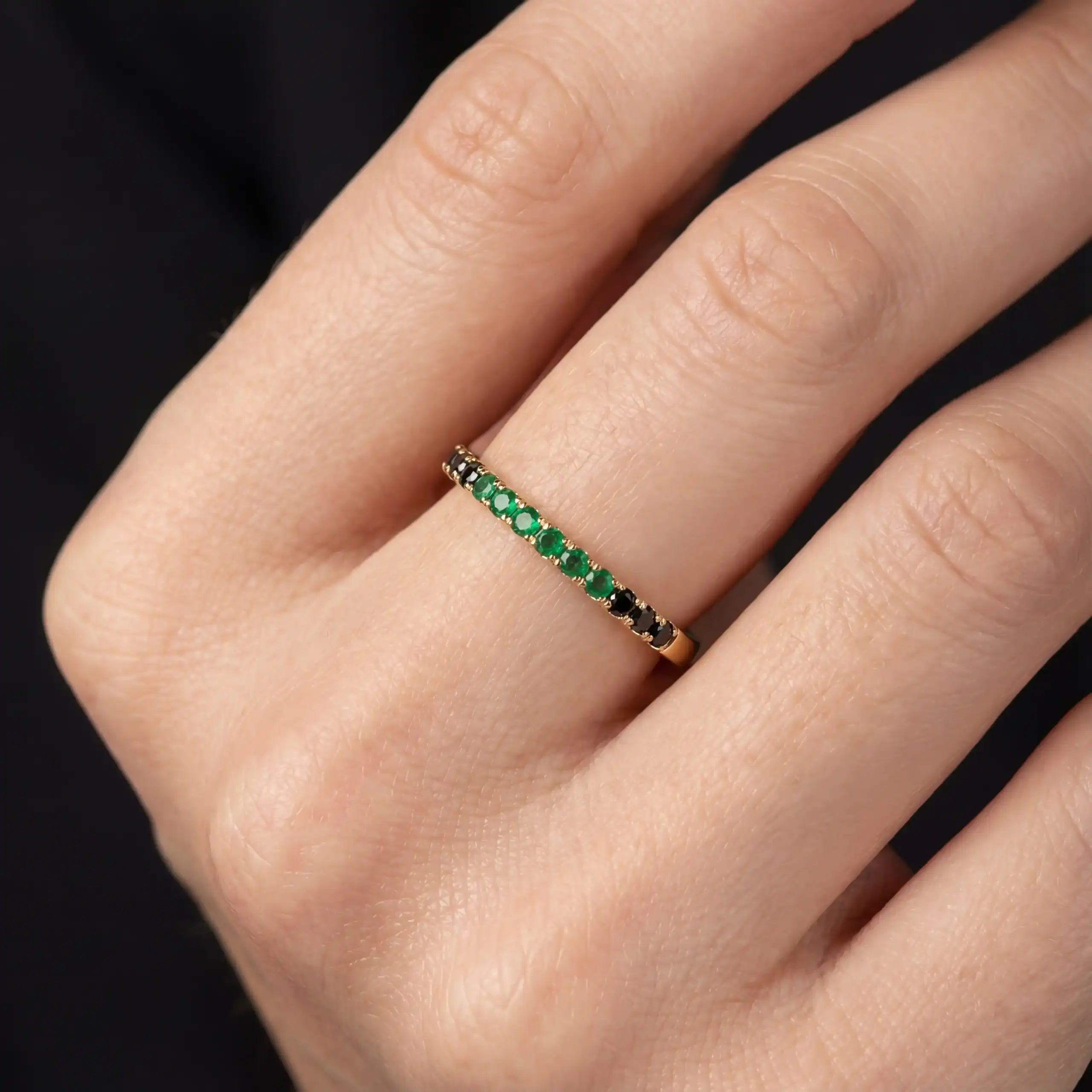 טבעת נישואים יהלומים שחורים ואמרלדים – Sue