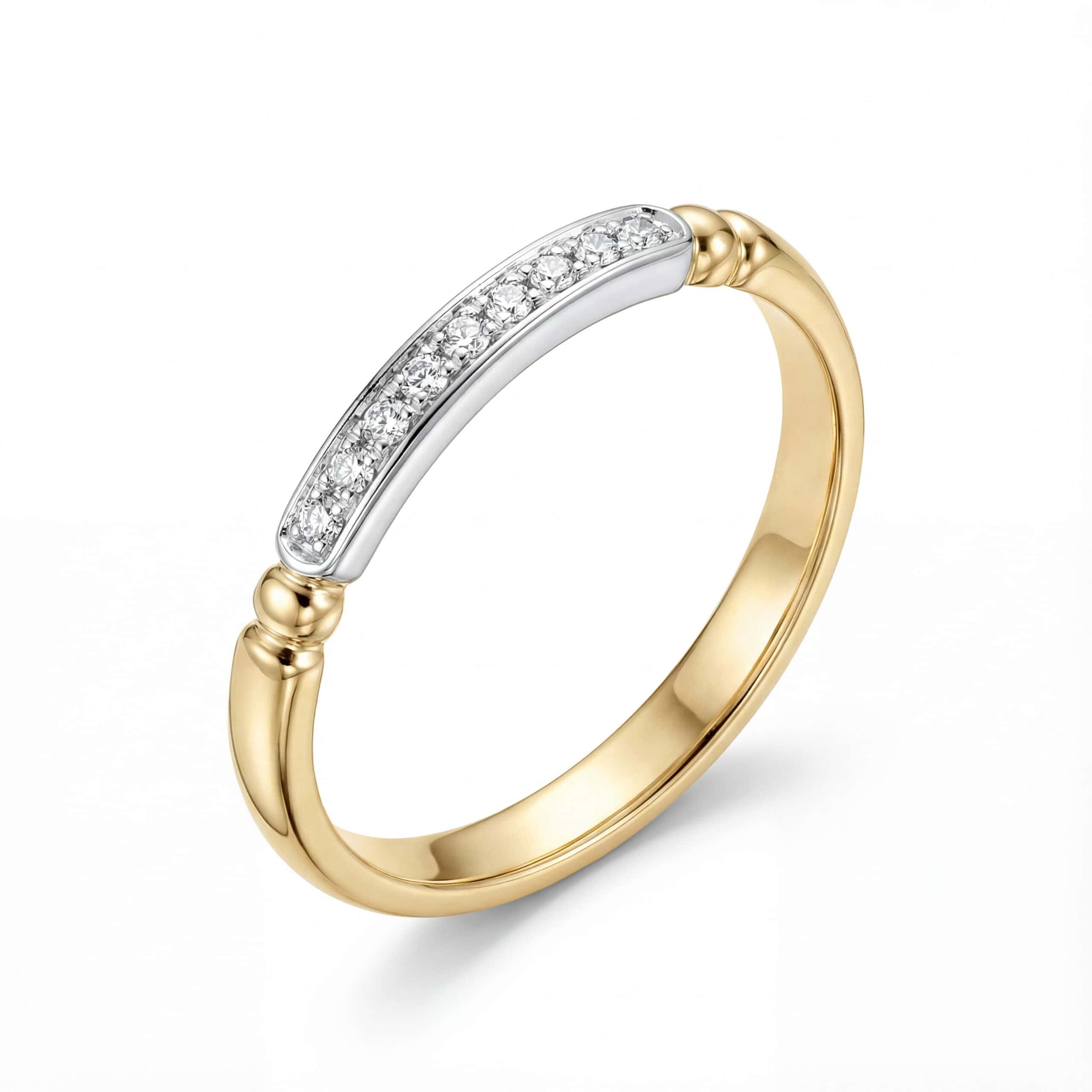טבעת נישואין זהב צהוב ולבן עם יהלומים -Gail