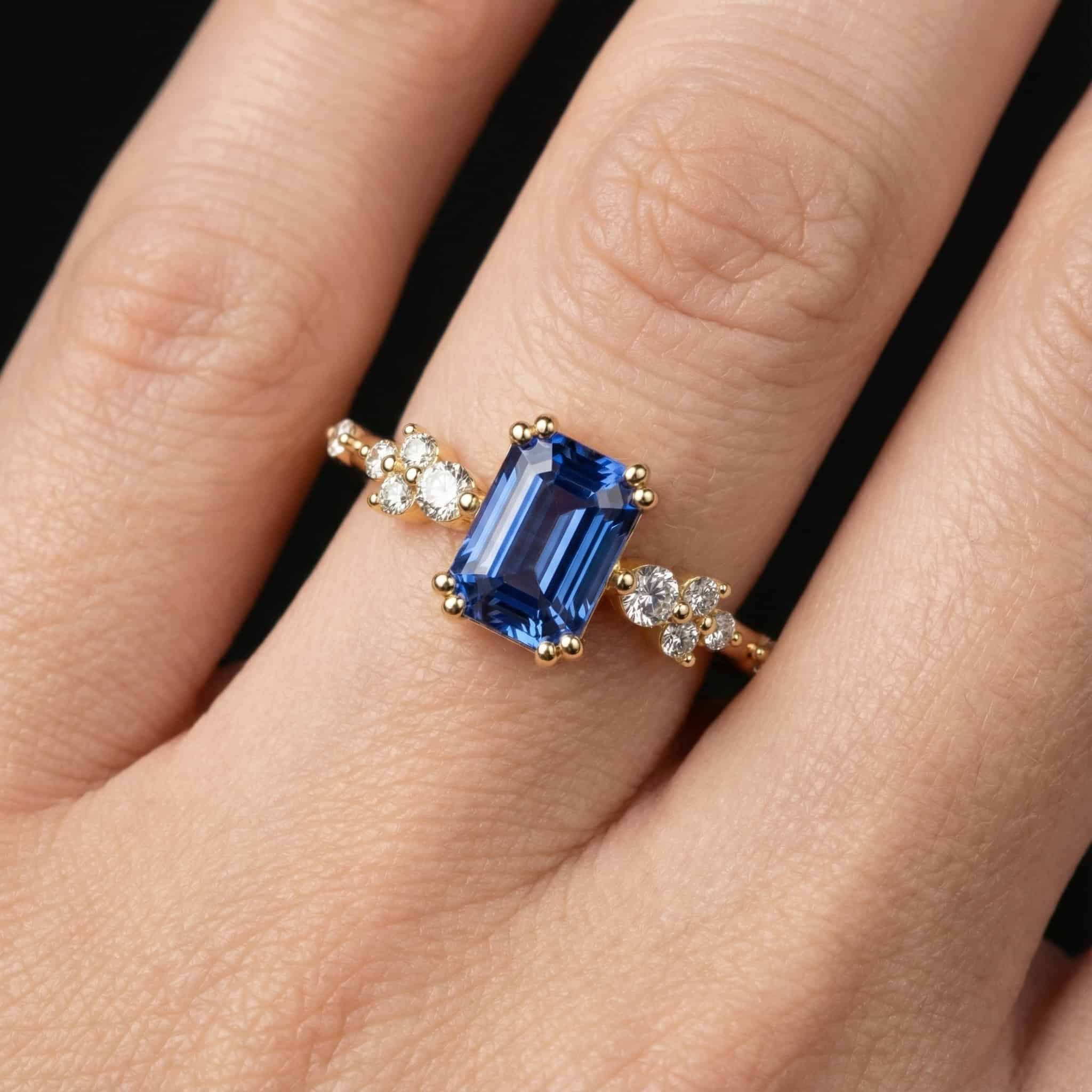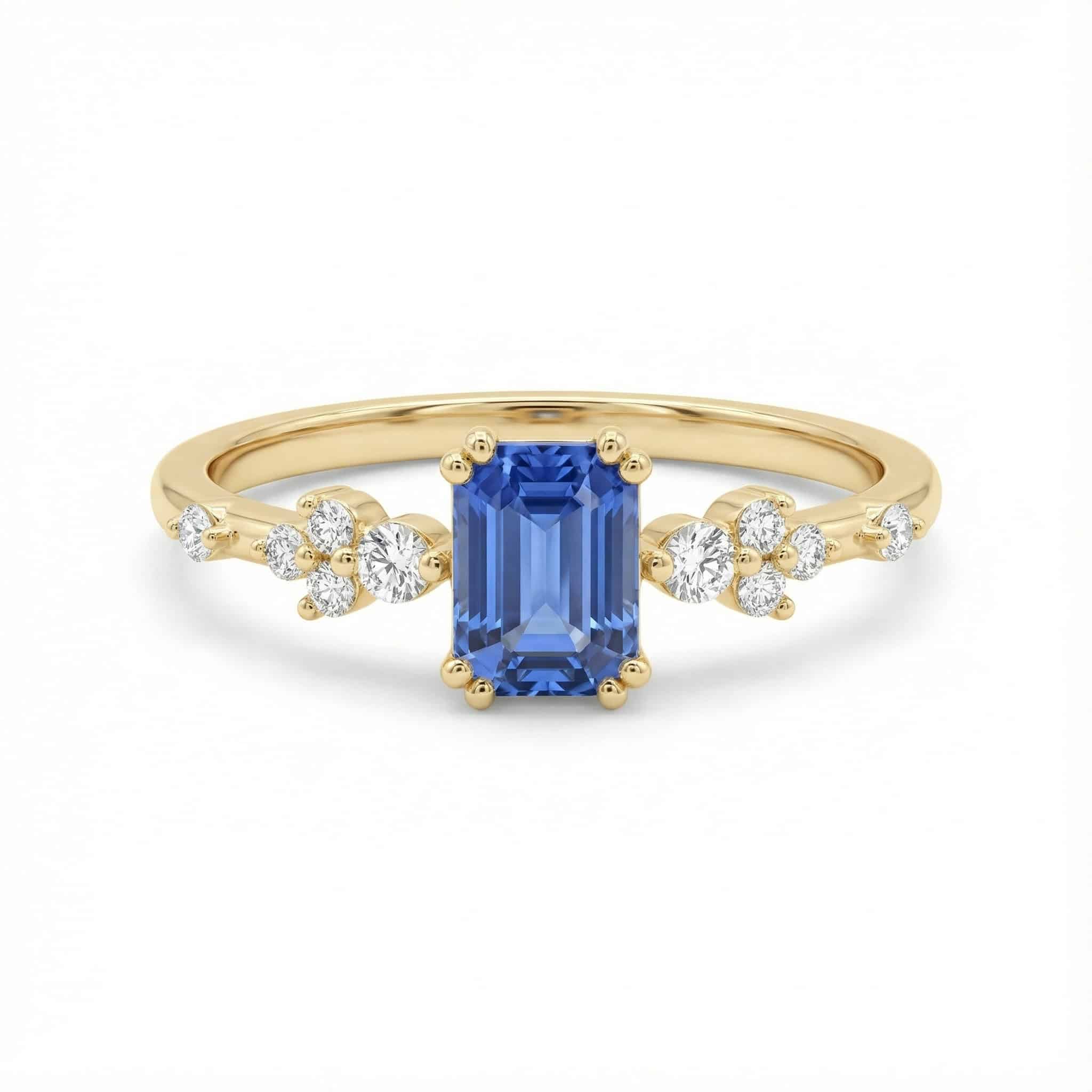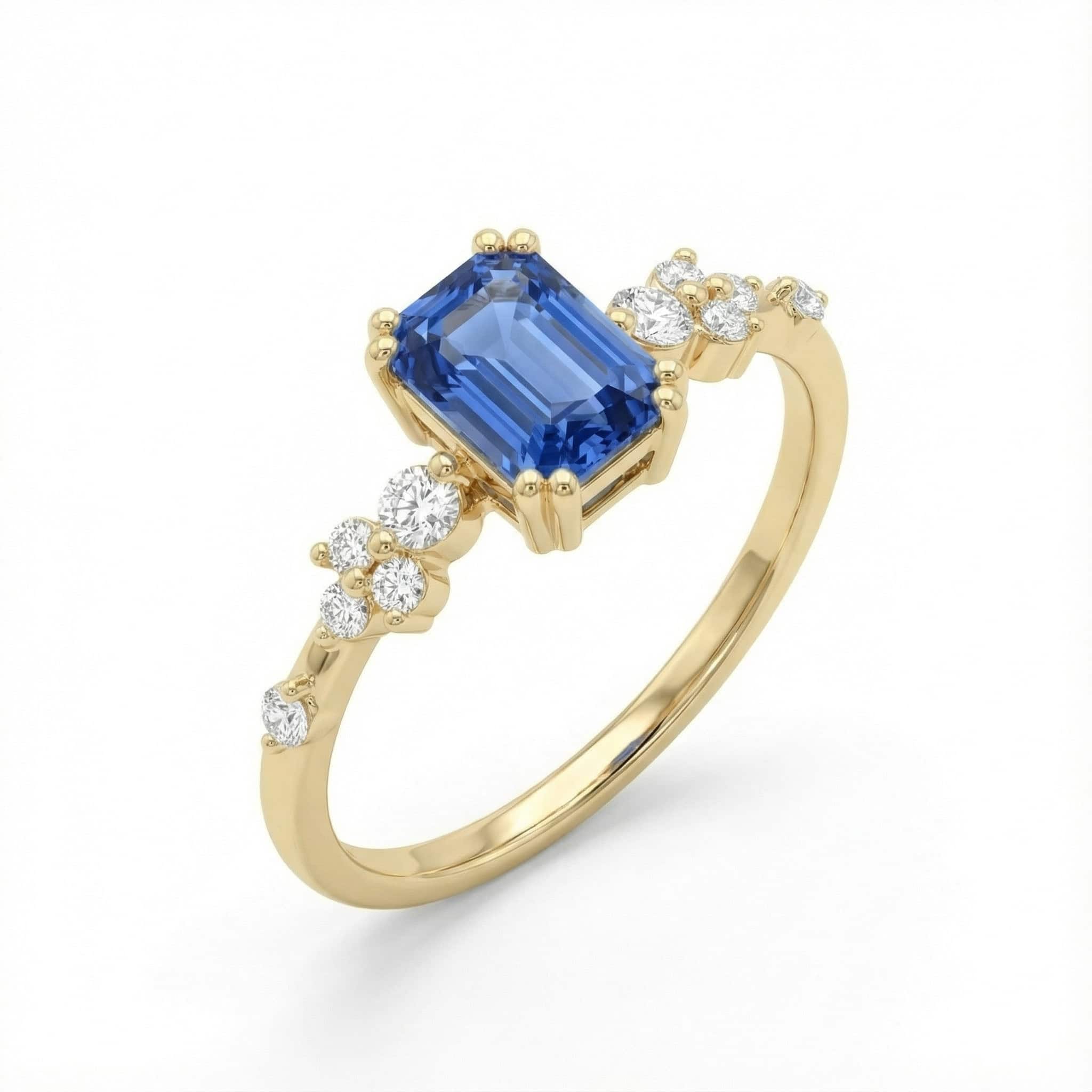 טבעת ספיר בחיתוך אמרלד עם יהלומים – Gem