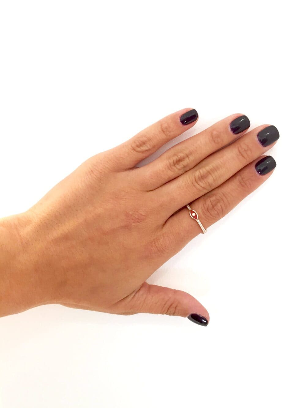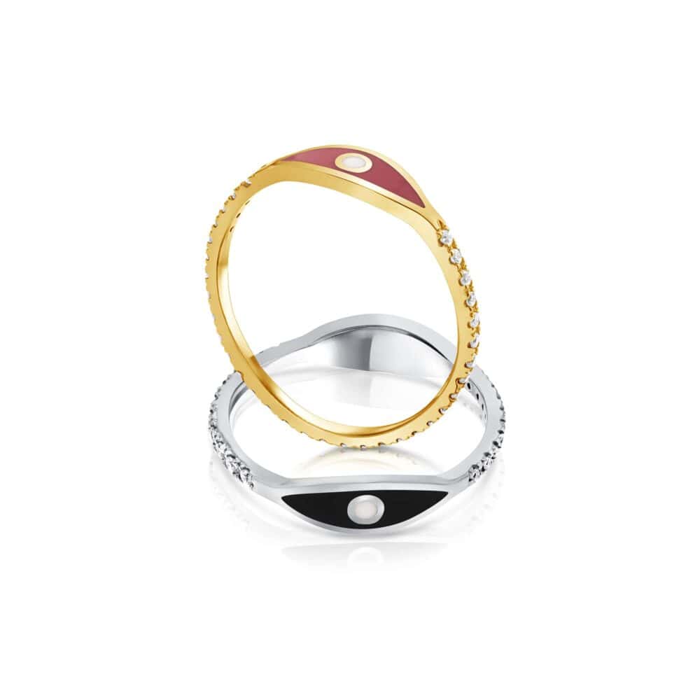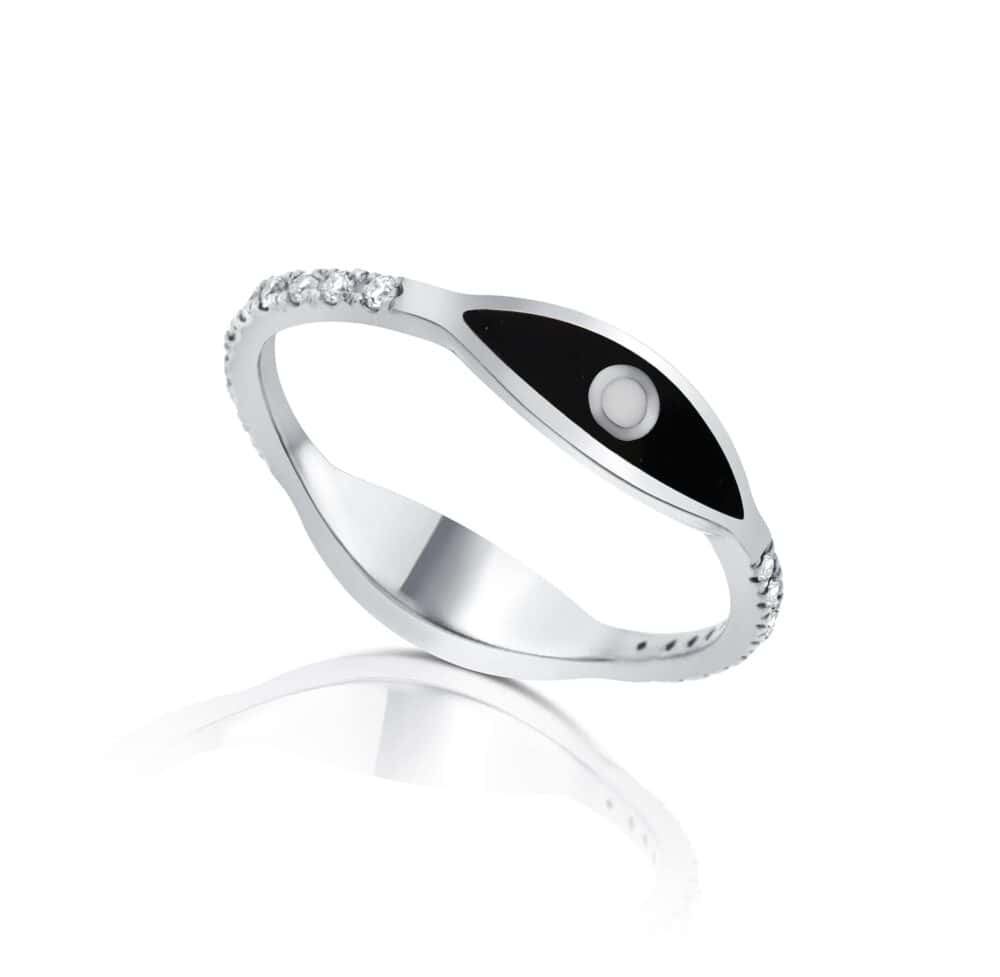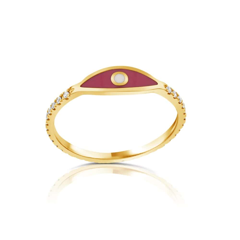 טבעת עין ,זהב לבן, צהוב או ורוד 14K משובץ יהלומים במשקל 0.15 נקודות סה"כ.
