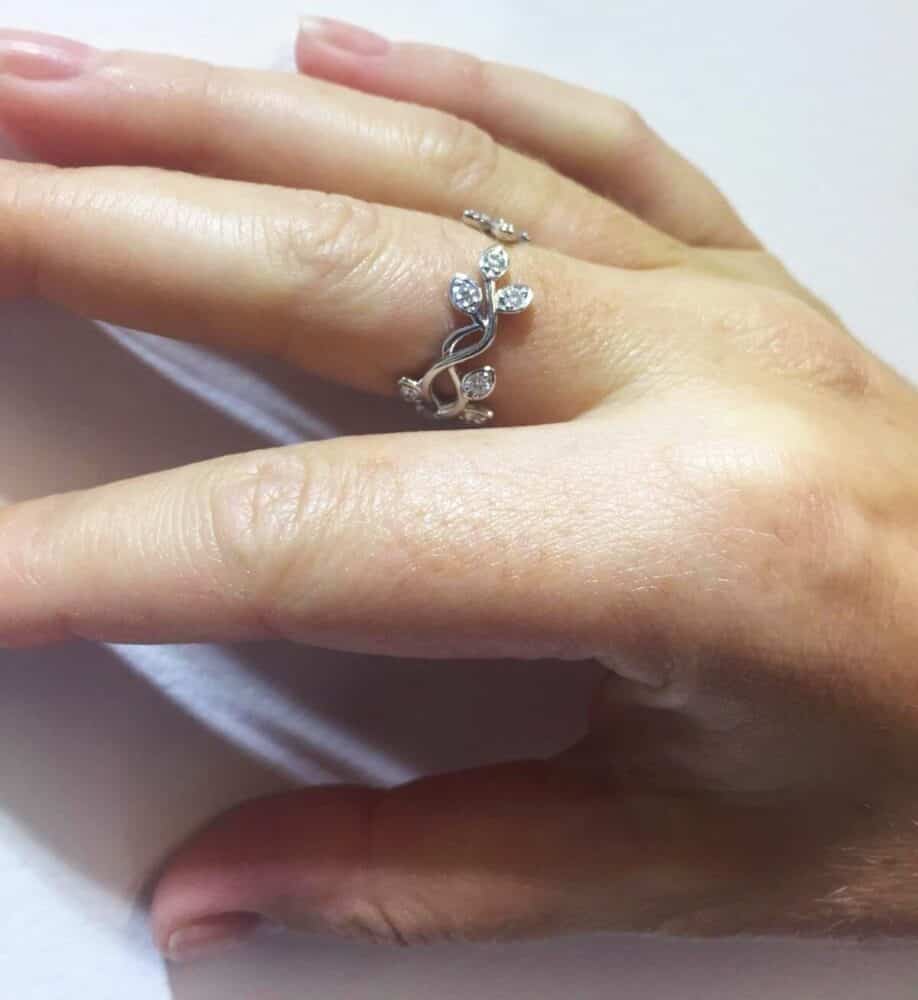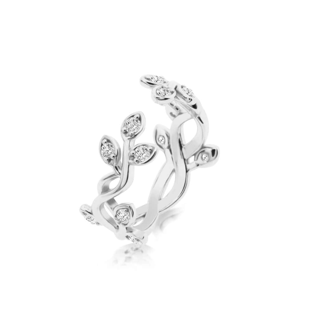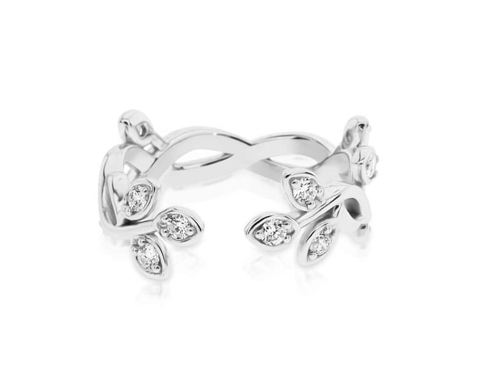 טבעת עלים משובץ יהלומים, זהב לבן, צהוב או ורוד 14K משובץ יהלומים במשקל 0.36 נקודות סה"כ.