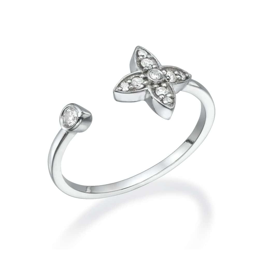 טבעת יהלומים פתוחה זו מציגה עיצוב מרהיב המשלב טבע ויוקרה. בצד אחד של הטבעת מתנוסס פרח עדין , אשר עלי הכותרת שלו משובצים יהלומים . בצד השני, משובץ יהלום נוצץ בתוך בית אבן אלגנטי, המעניק לו מראה יוקרתי ומלוטש. הפתיחות של הטבעת מאפשרת לשני האלמנטים הייחודיים – הפרח והיהלום – לזרוח כל אחד בפני עצמו, תוך יצירת איזון הרמוני בין עדינות הטבע לזוהר האבן. התוצאה היא תכשיט מלא קסם שמתאים לכל אירוע, ומביא איתו שילוב מושלם של טבע ויוקרה. לפרטים צור קשר.