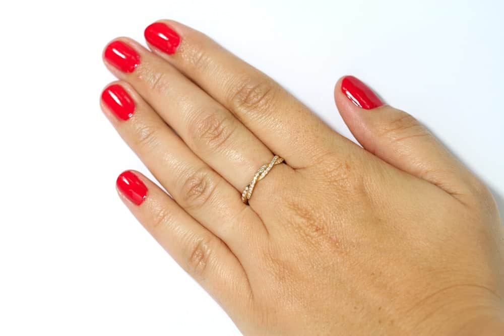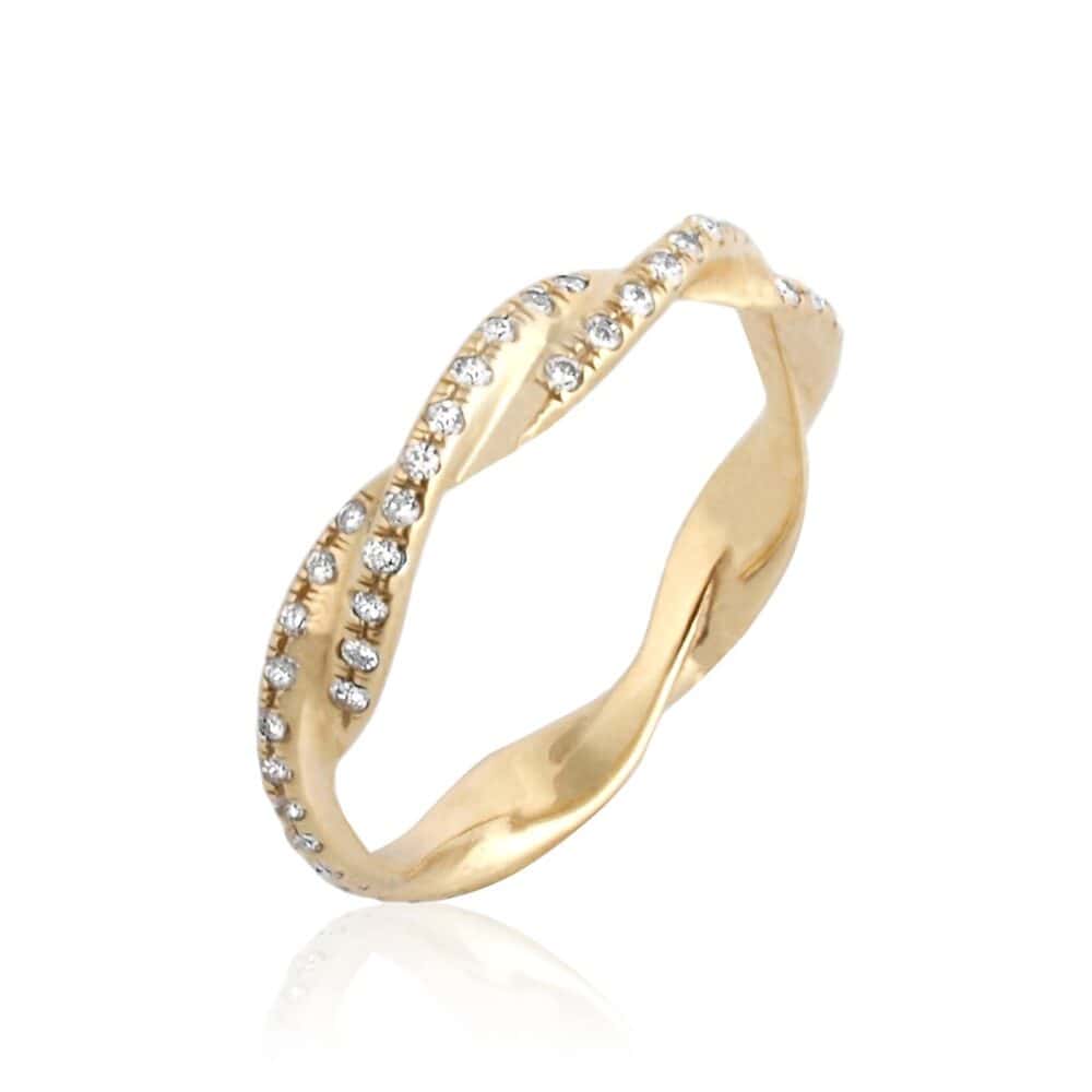 טבעת צמה יהלומים, זהב 14K לבן צהוב או ורוד. משובצת יהלומים במשקל 0.33 נקודות.