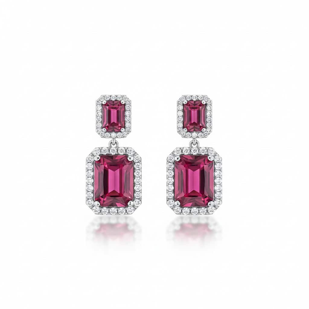 עגילי היילו אבני חן, זהב לבן, צהוב או ורוד 14K משובץ יהלומים