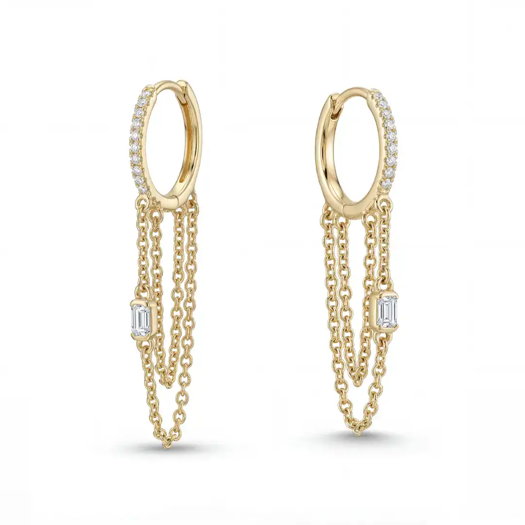 עגילי חישוק יהלומים ושרשראות תלויות -Kristi זהב לבן, צהוב או ורוד 14K משובץ יהלומים.