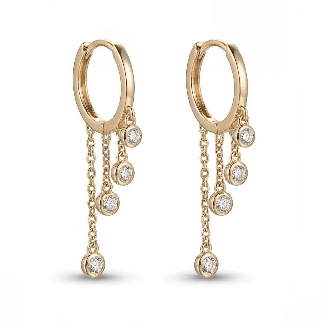 עגילי חישוק עם יהלומים תלויים – Laurie
