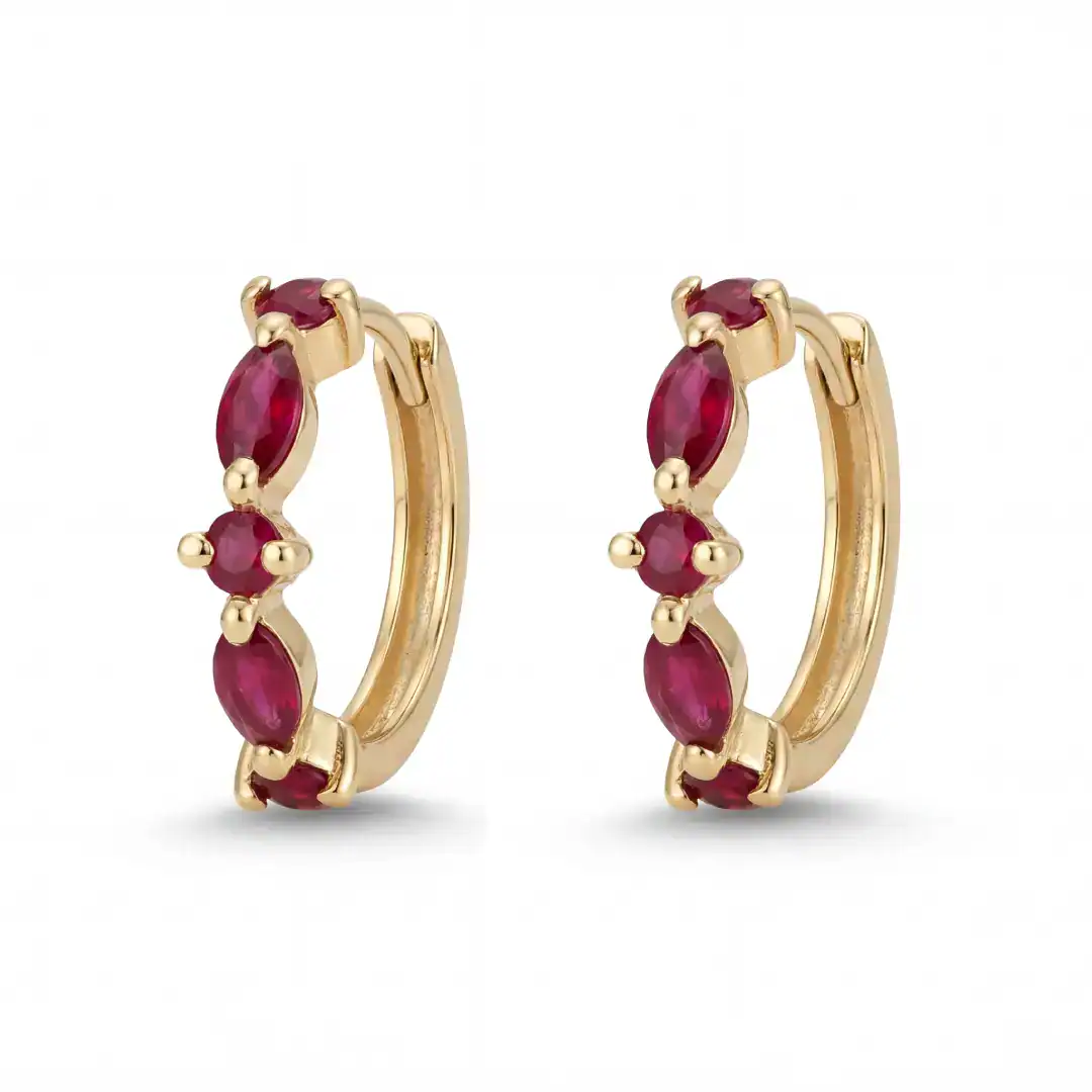 עגילי חישוק רובי פנטזי – Shelia, זהב לבן, צהוב או ורוד 14K משובצת רובי.