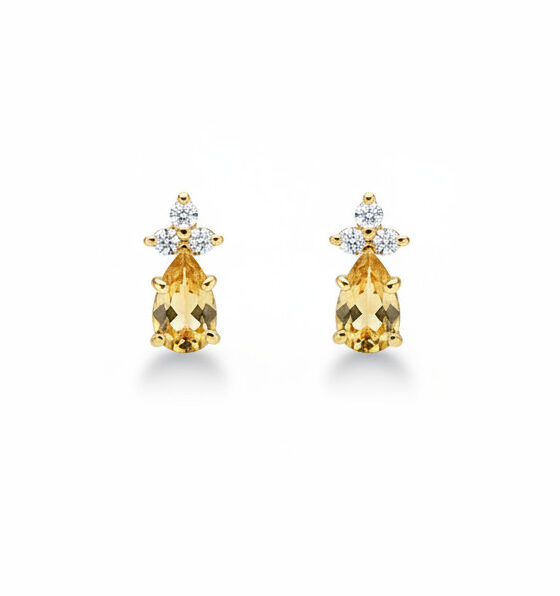 עגילי טיפות אבני חן, זהב לבן, צהוב או ורוד 14K משובץ יהלומים