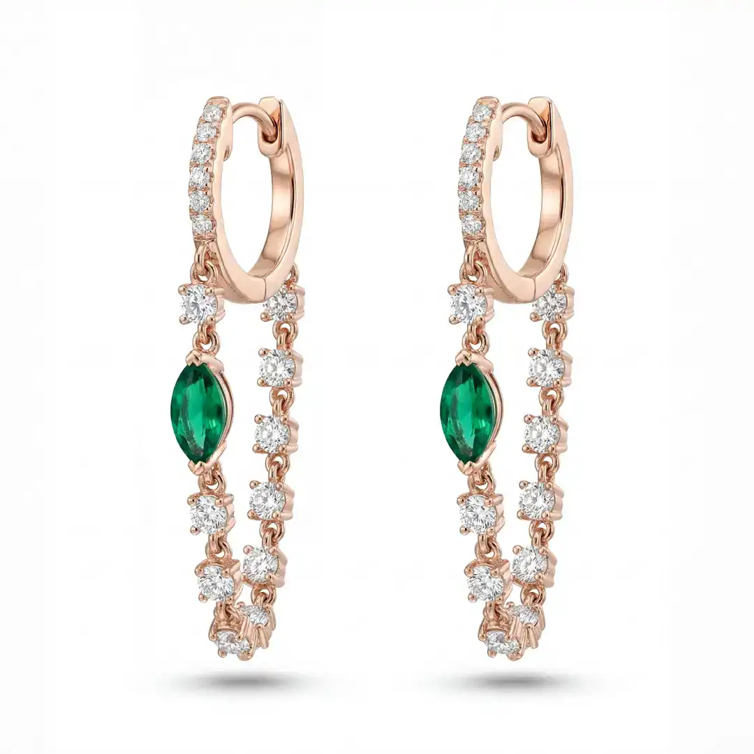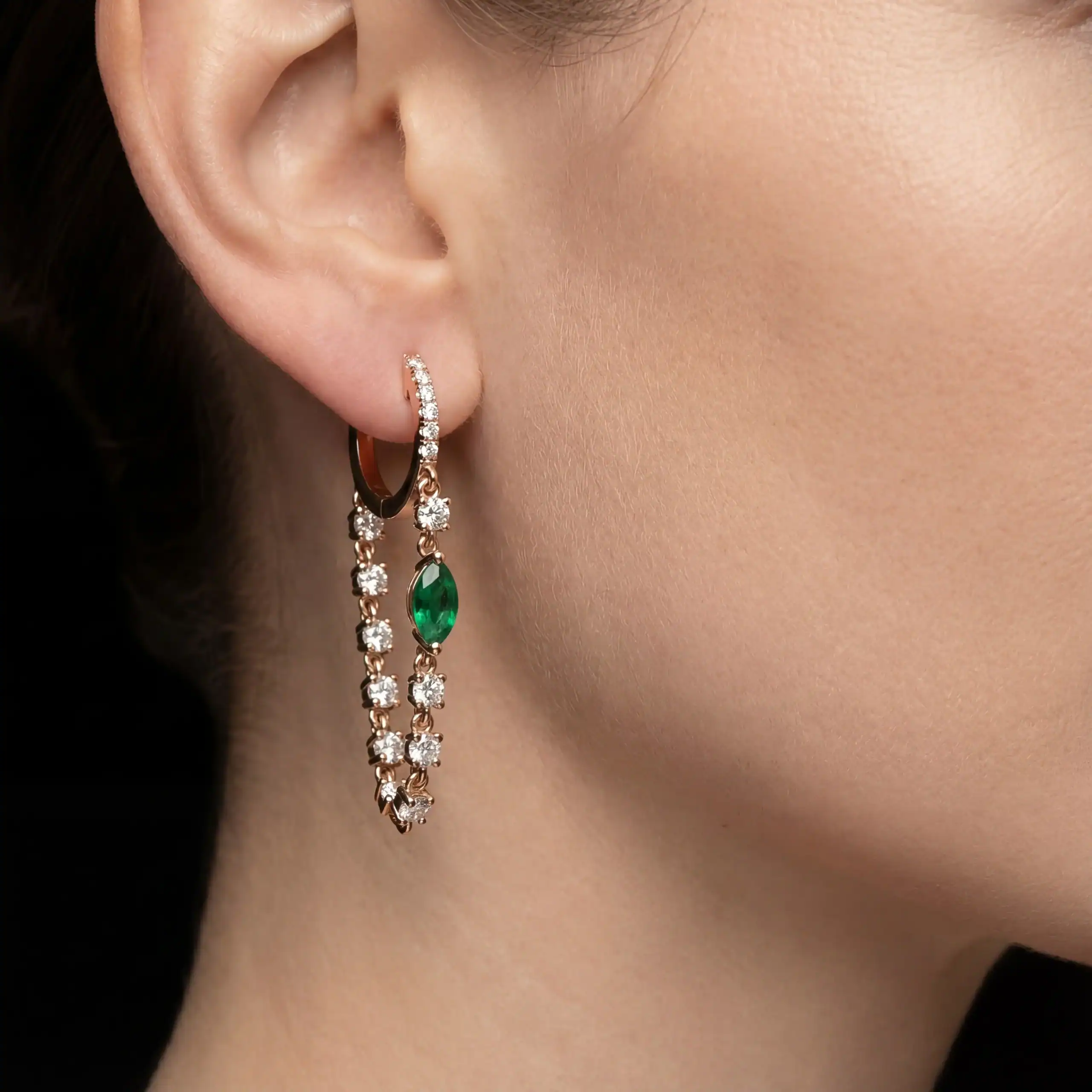 עגילי יהלומים תלויים ומרקיזה ירוקה – Terri