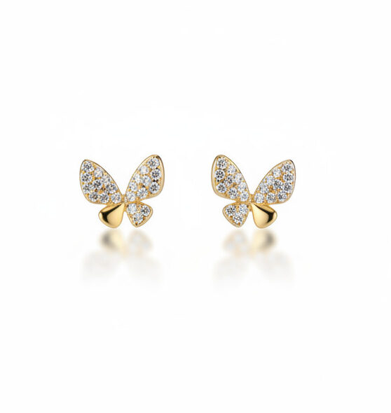 עגילי פרפר משובצים יהלומים, זהב לבן, צהוב או ורוד 14K משובץ יהלומים
