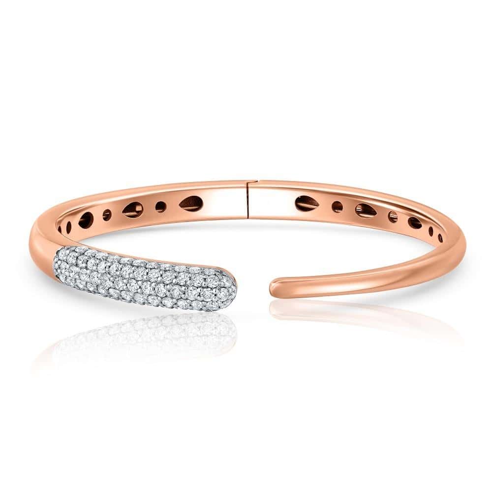 צמיד עם קפיץ, זהב 14K לבן צהוב או ורוד, משובץ יהלומים במשקל כולל של 1.10 קראט.