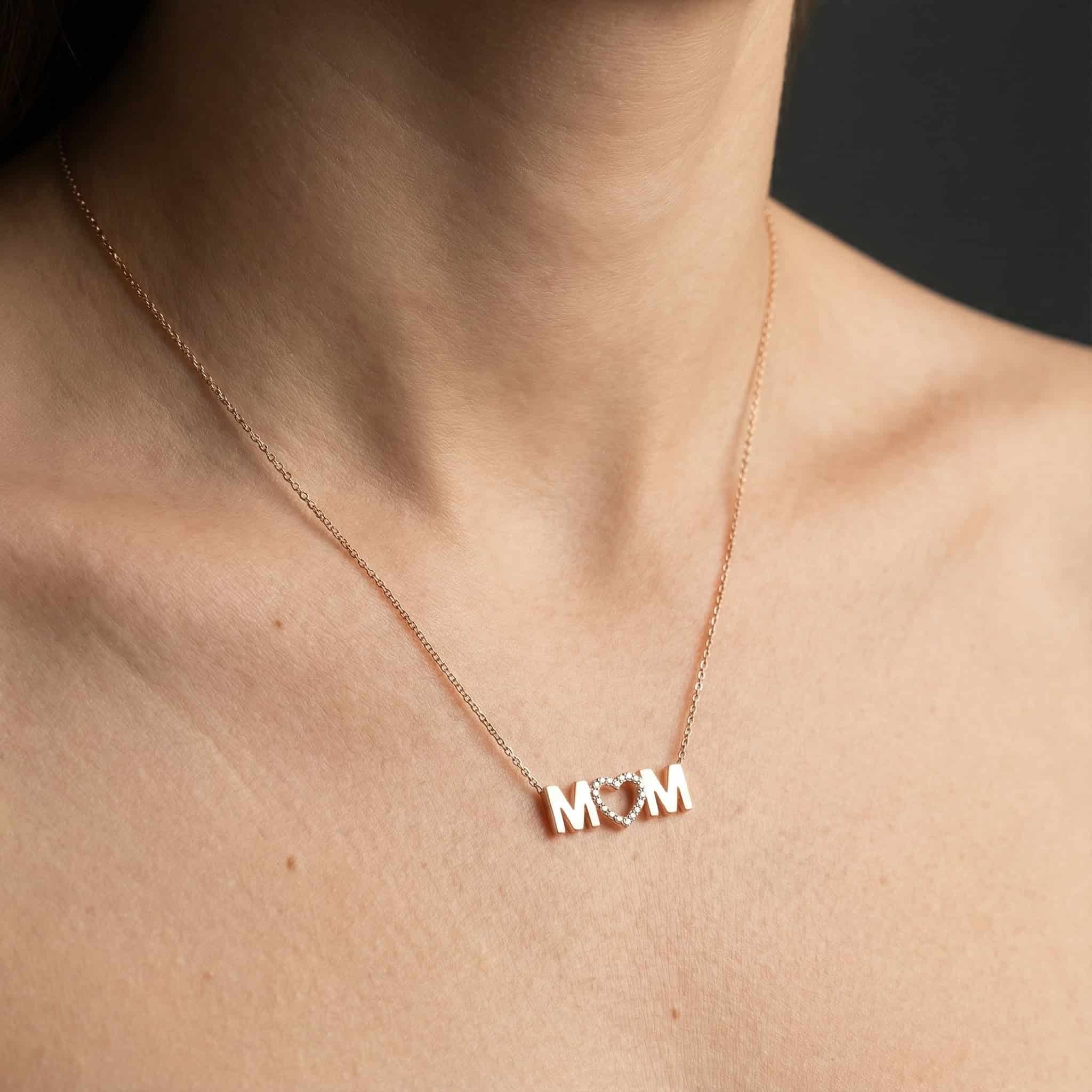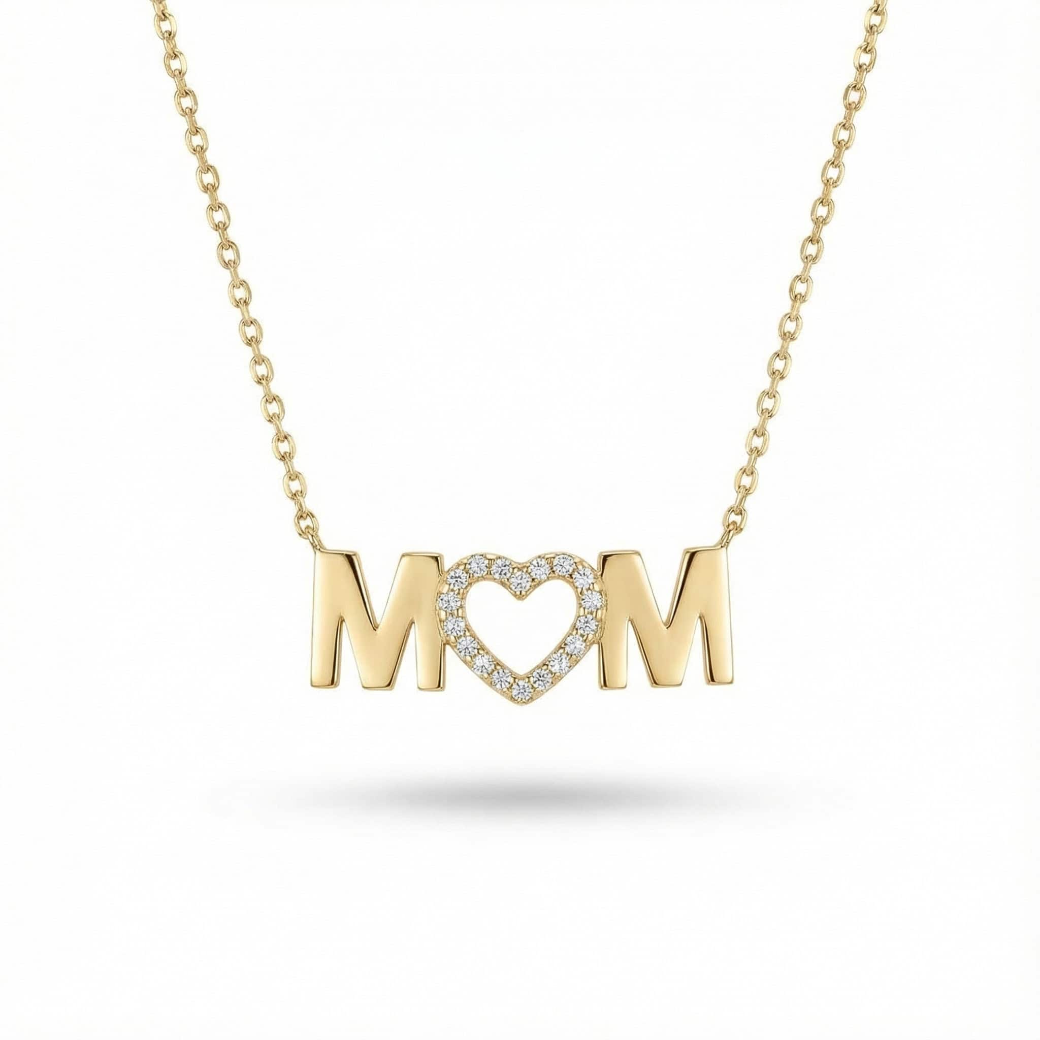 תליון אמא עם לב משובץ יהלומים -MOM