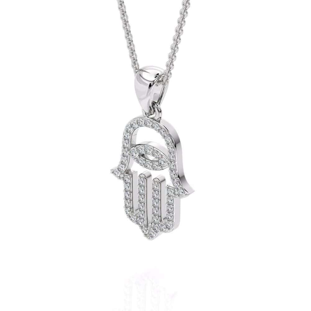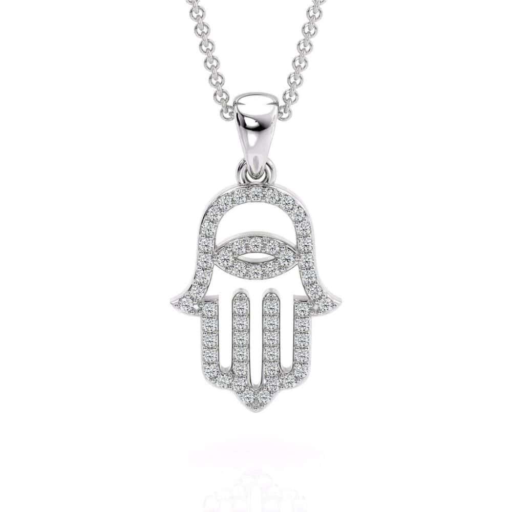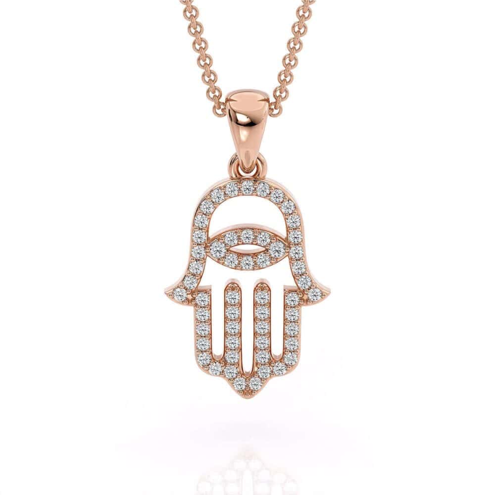 תליון חמסה ,זהב 14K לבן, צהוב או ורוד , משובצת יהלומים במשקל כולל של 0.20 קראט. כולל שרשרת.