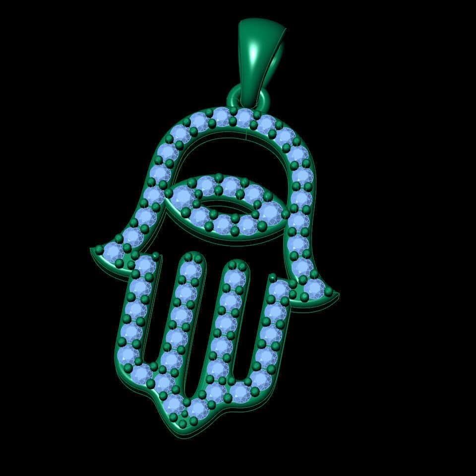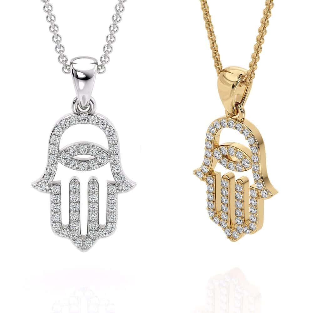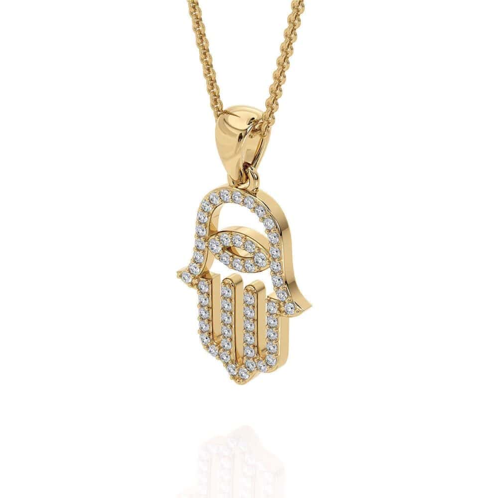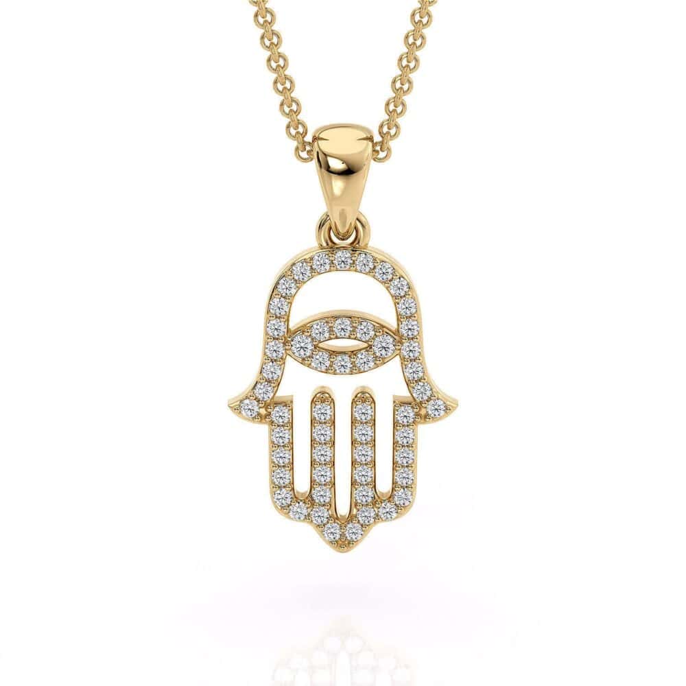 תליון חמסה ,זהב 14K לבן, צהוב או ורוד , משובצת יהלומים במשקל כולל של 0.20 קראט. כולל שרשרת.