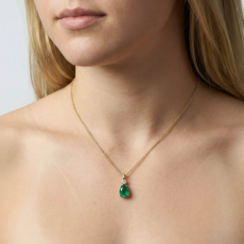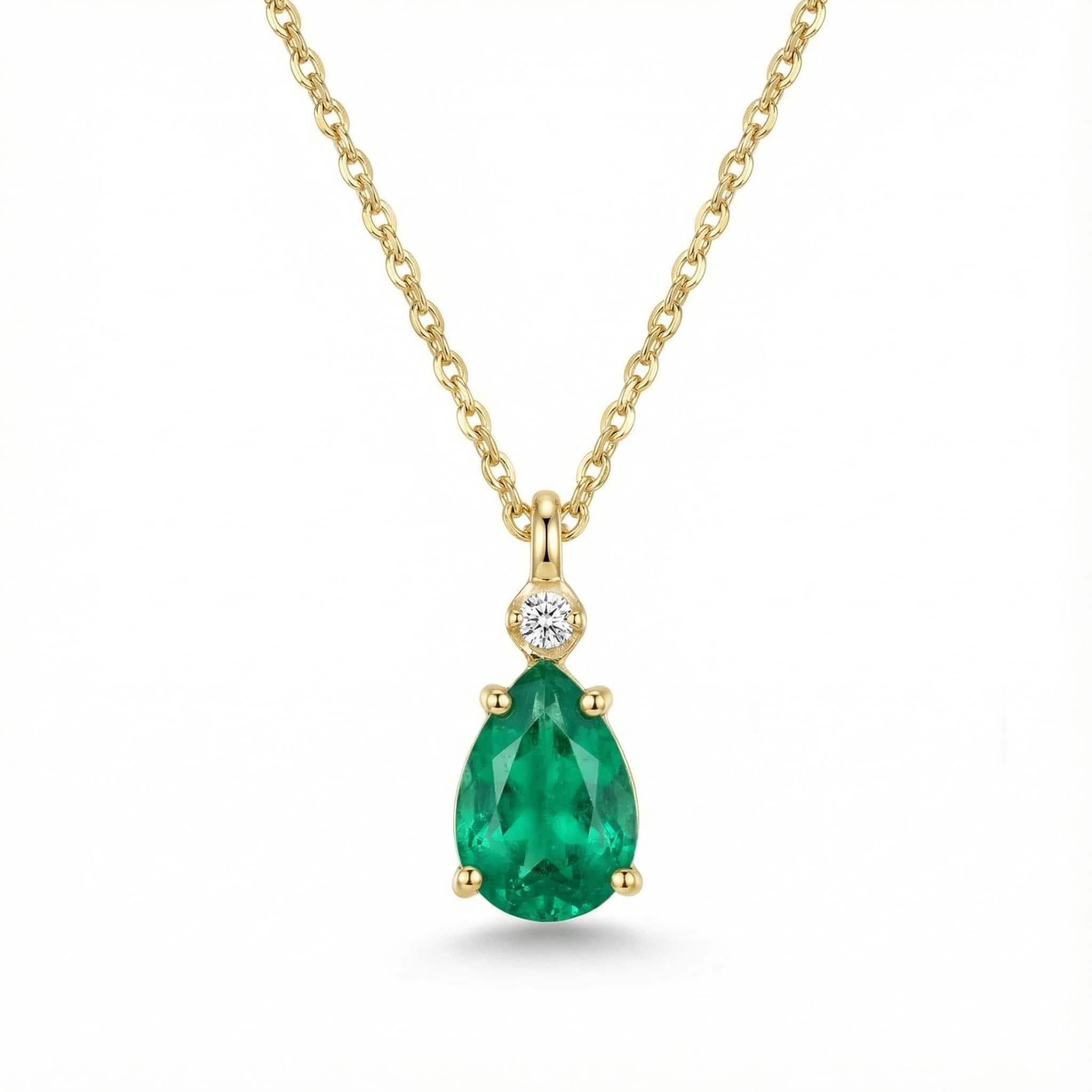 תליון יוקרתי ואלגנטי בעיצוב קלאסי-מודרני, משובץ אבן אמרלד טבעית בצורת טיפה, המשלבת צבע ירוק עמוק ומלא חיים עם ברק טבעי ועוצמתי.