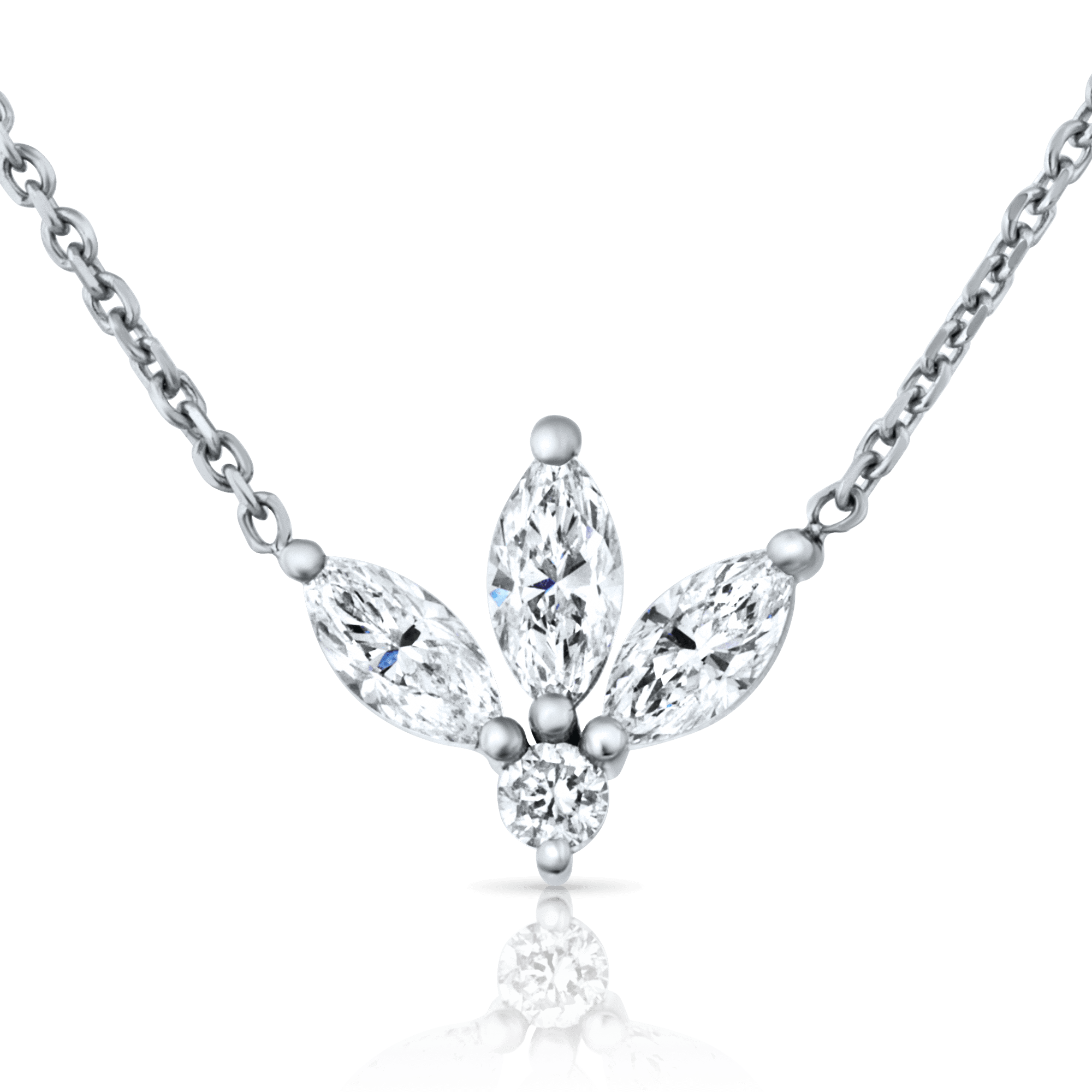 תליון יהלומים זהב 14K לבן, צהוב או ורוד, משובצים יהלומים בחיתוך מרקיזות ועגולה במשקל 0.50 נקודות סה"כ. כולל שרשרת.
