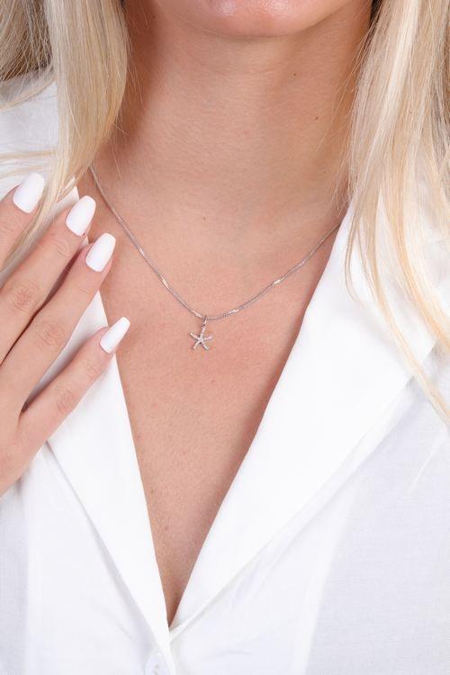 תליון כוכב ים משובץ יהלומים ,זהב 14K לבן, צהוב או ורוד משובץ יהלומים במשקל 0.10 נקודות סה"כ. (מחיר כולל שרשרת)