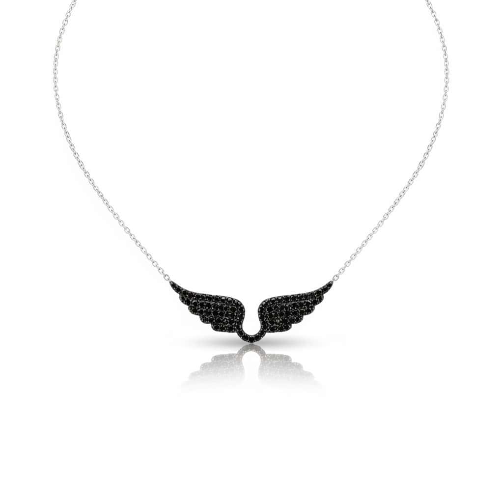 תליון כנפיים יהלומים שחורים, זהב לבן, צהוב או ורוד 14K משובץ יהלומים
