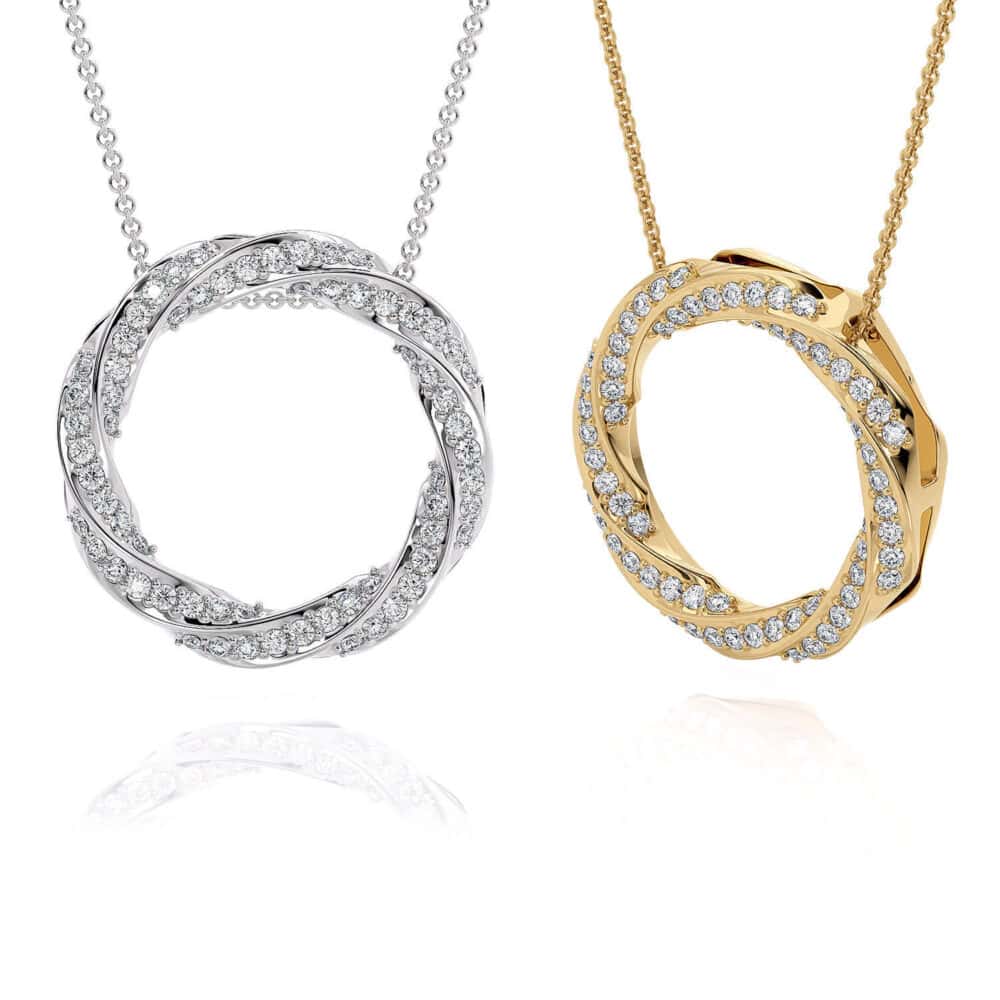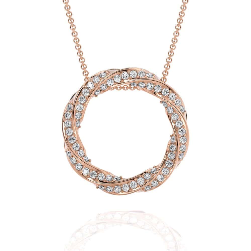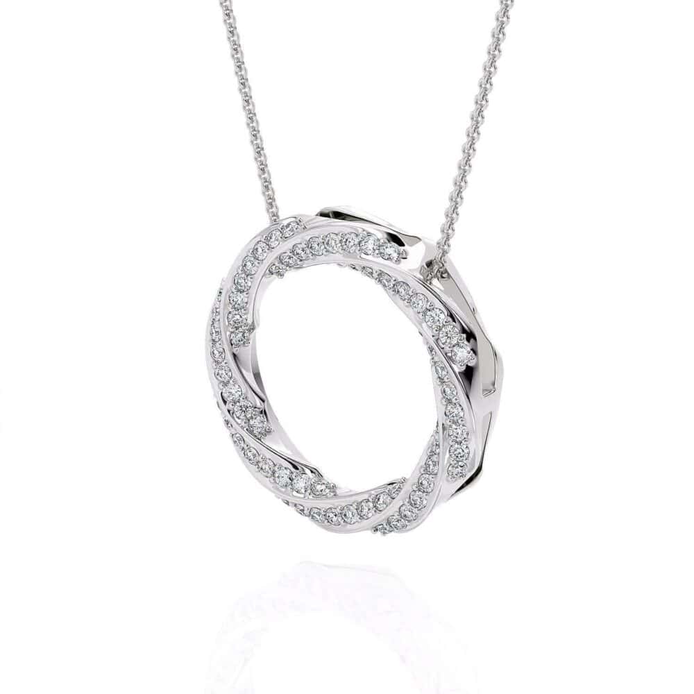 תליון מעגל מעוצב ומסולסל, דרך מצויינת להוסיף מראה מנצנץ למראה יומיומי שלך התליון המהמם הזה יש מראה קלאסי שלעולם לא ייצא מהאופנה, התליון מגיע בזהב 14K קראט לבן צהוב או ורוד, משובץ יהלומים במשקל 0.32 נקודות. וכולל שרשרת.