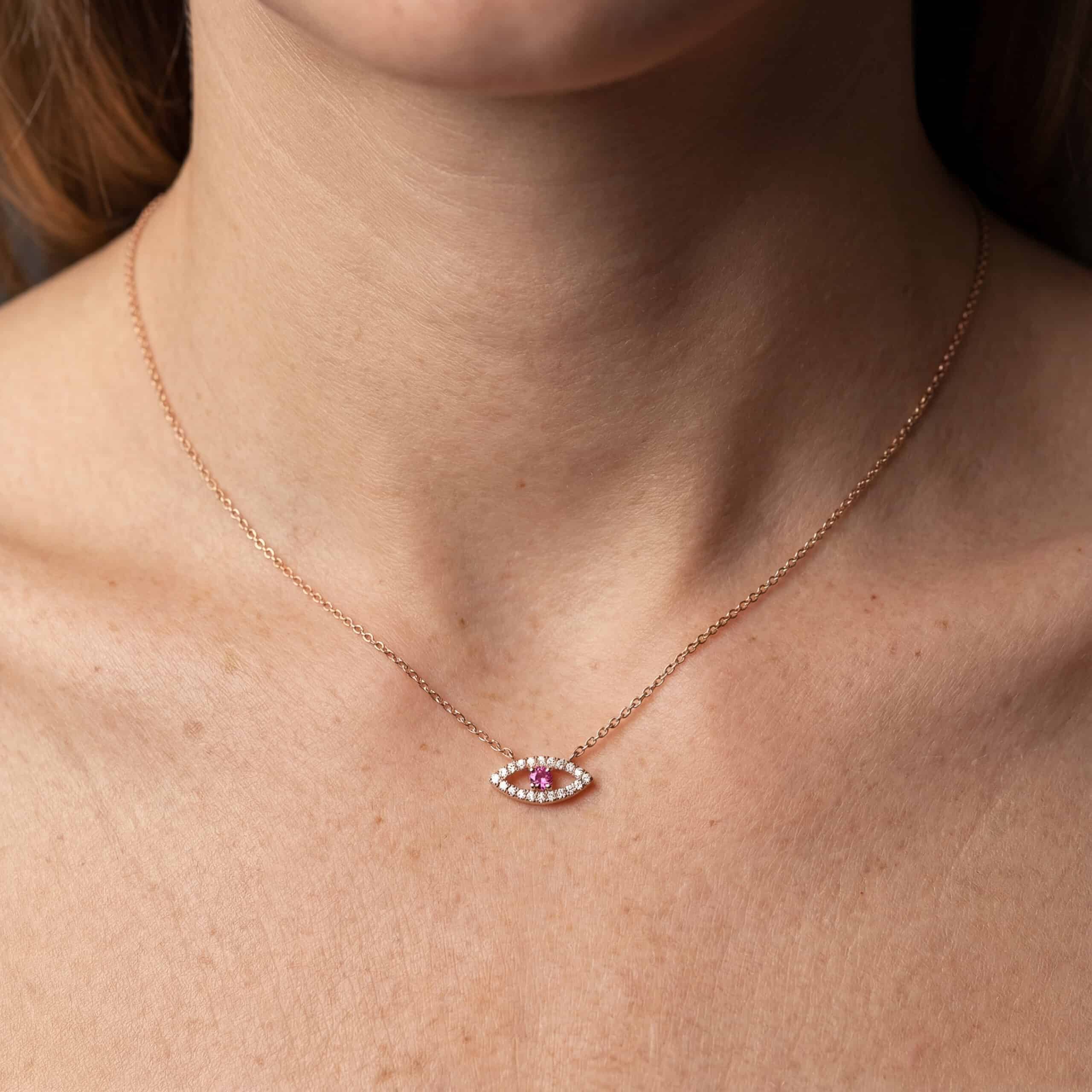 תליון עיין עם אבן חן ורודה ויהלומים – Ewelina