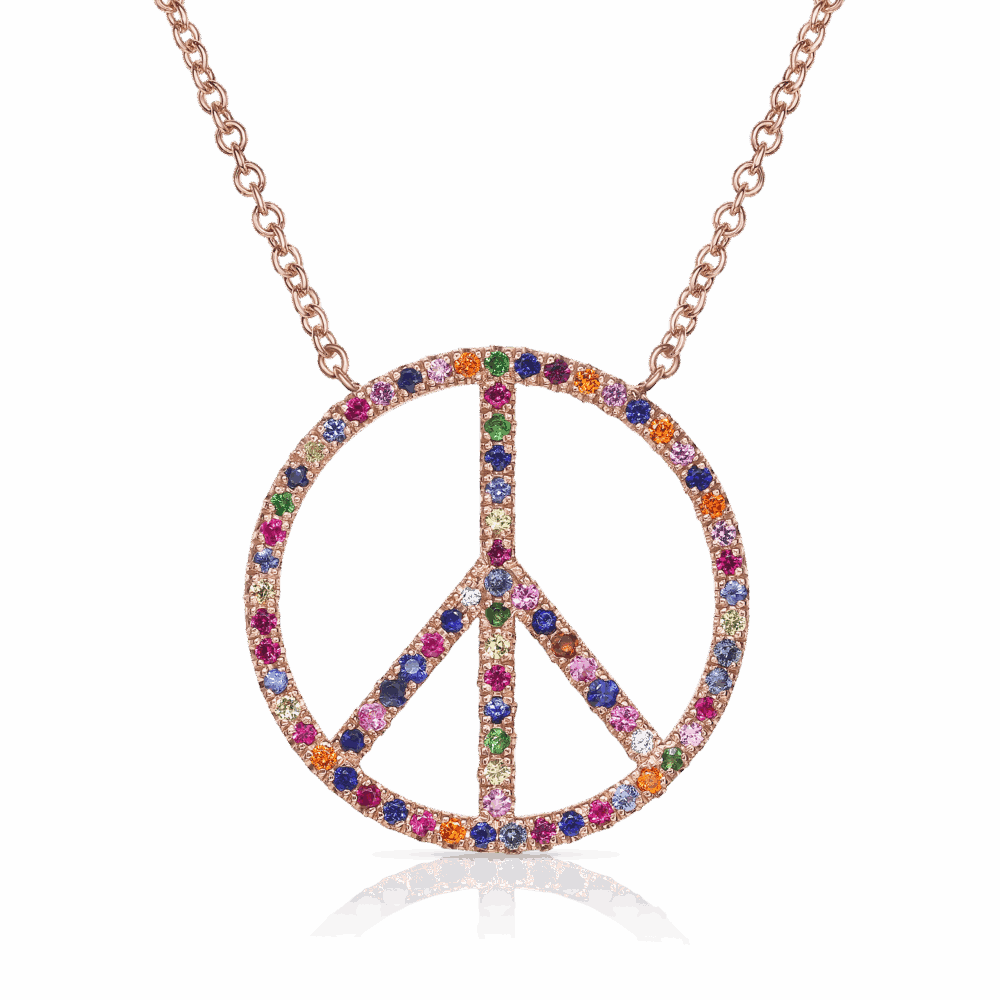 תליון פיס משובץ אבני חן צבעוניות, זהב 14K לבן צהוב או ורוד. כולל שרשרת.