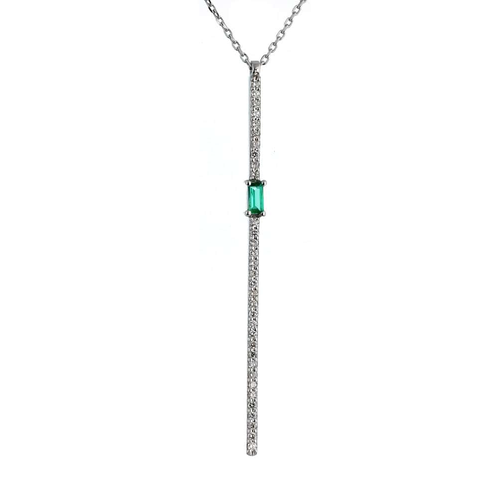 תליון פס יהלומים ואמרלד, זהב 14K לבן, צהוב או ורוד, משובץ יהלומים במשקל 0.20 נקודות ואבן חן אמרלד במשקל 0.08 נקודות. כולל שרשרת.מפרט התכשיט:
