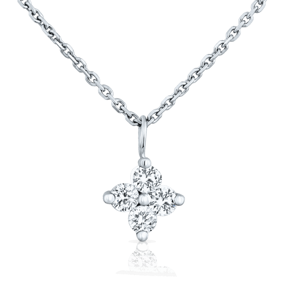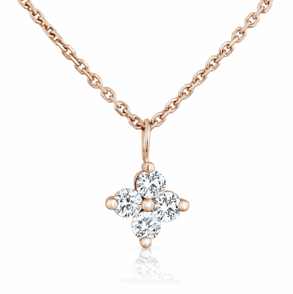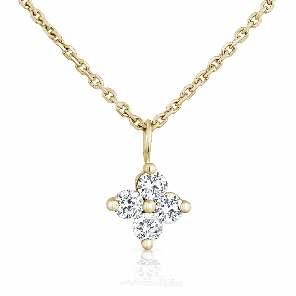 תליון 4 יהלומים זהב לבן, צהוב או ורוד 14 קראט, משובץ 4 יהלומים במשקל 0.24 נקודות סה"כ. תליון מושלם וקלאסי שמוסיף ניצנוץ ואלגנטיות. תכשיט שתמיד ישאר באופנה ויתן מראה יום יומי של יוקרה. היהלומים הם בדרגת איכות הגבוה ביותר בדרגת צבע D-F וניקיון VS. (כולל שרשרת).