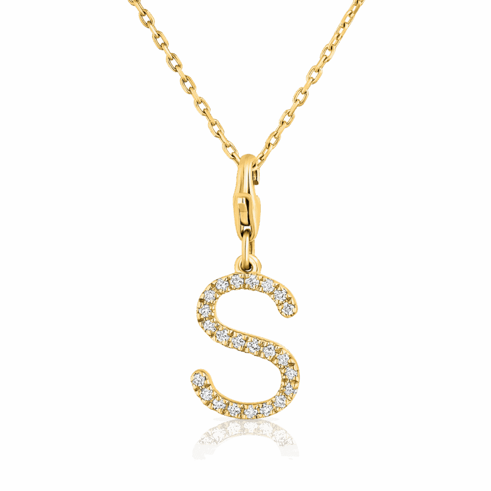 תליון אות יהלומים לפי בחירה, זהב 14K קראט לבן צהוב או ורוד, משובץ יהלומים במשקל 0.10 נקודות. (לא כולל שרשרת).
